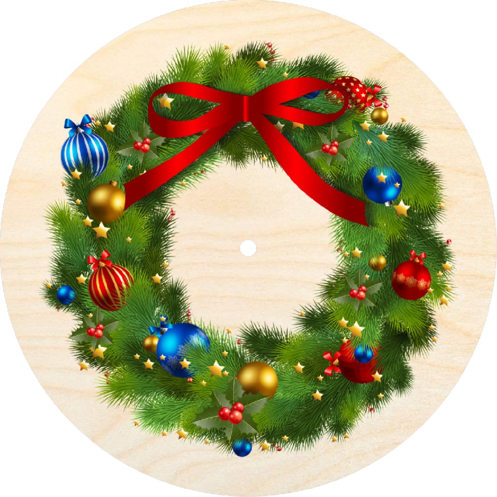 Holzdeckel mit Loch - Ø 20 cm, Weihnachtskranz mit Schleife
