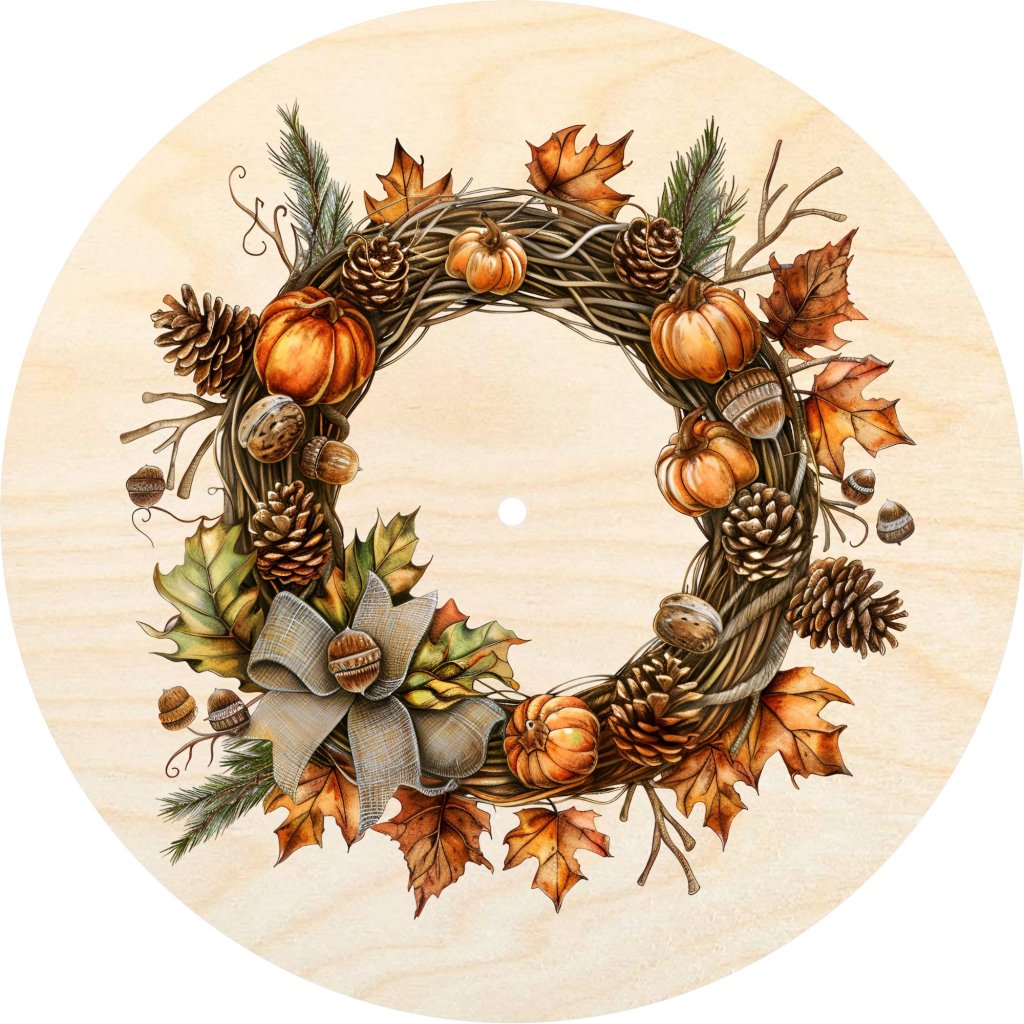 Holzdeckel mit Loch - Ø 22 cm, Herbstkranz