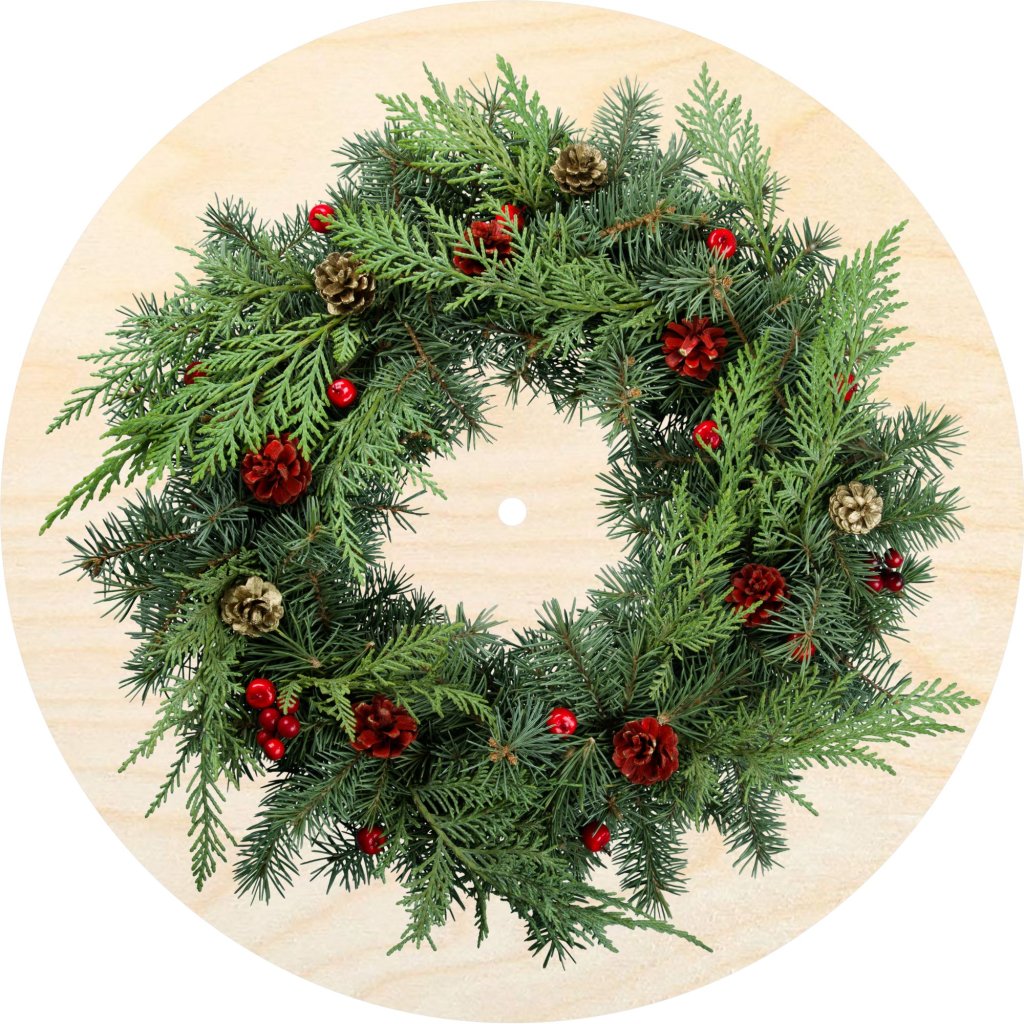 Holzdeckel mit Loch - Ø 22 cm, Kranz mit Tannenzapfen