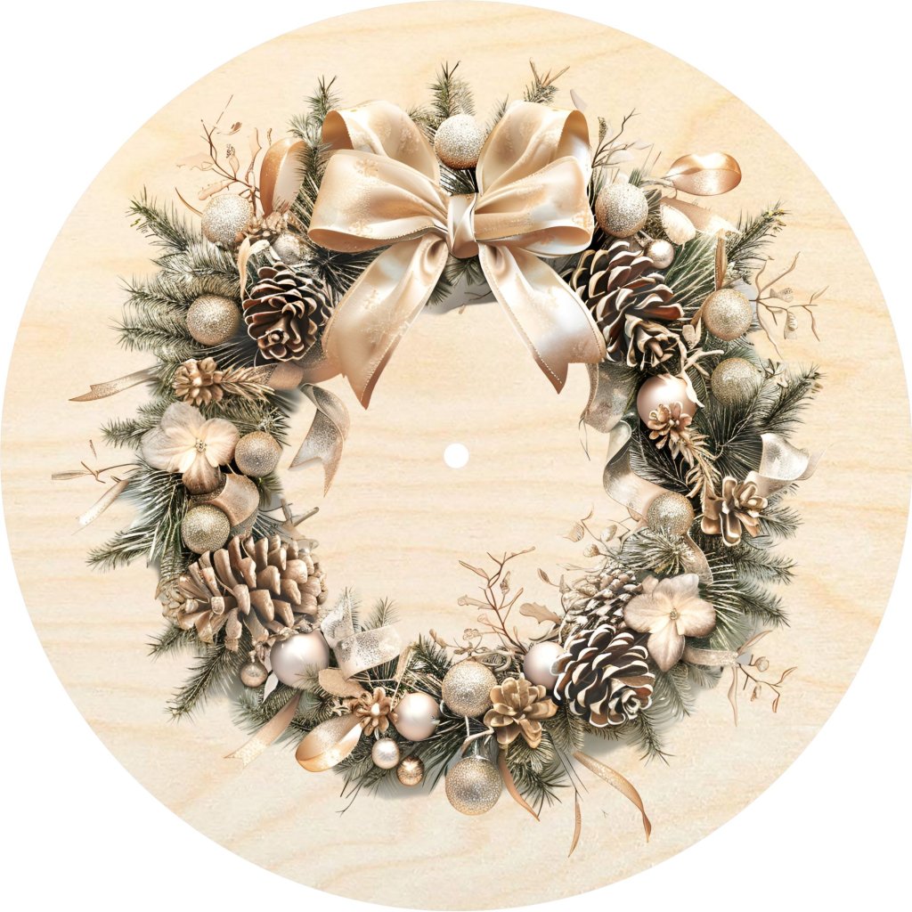 Holzdeckel mit Loch - Ø 22 cm, Weihnachtskranz