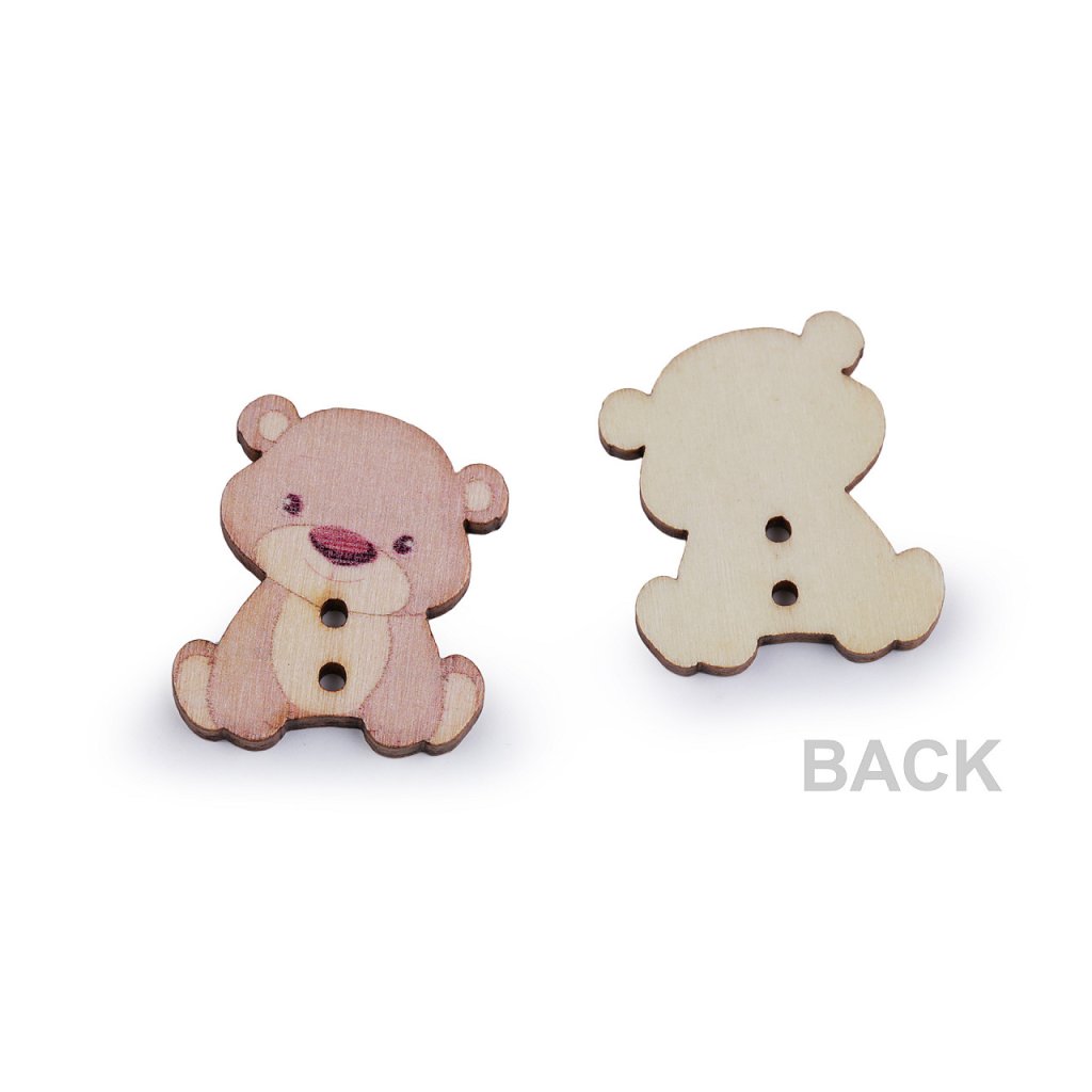 Niedliche Holzknöpfe mit Teddybär bezaubern vor allem Kinder. Sie können damit Taschen, Beutel, Fotorahmen, Tagebücher, Partyeinladungen usw. dekorieren. Knöpfe eignen sich zum Nähen und Kleben. Motive sind einseitig.