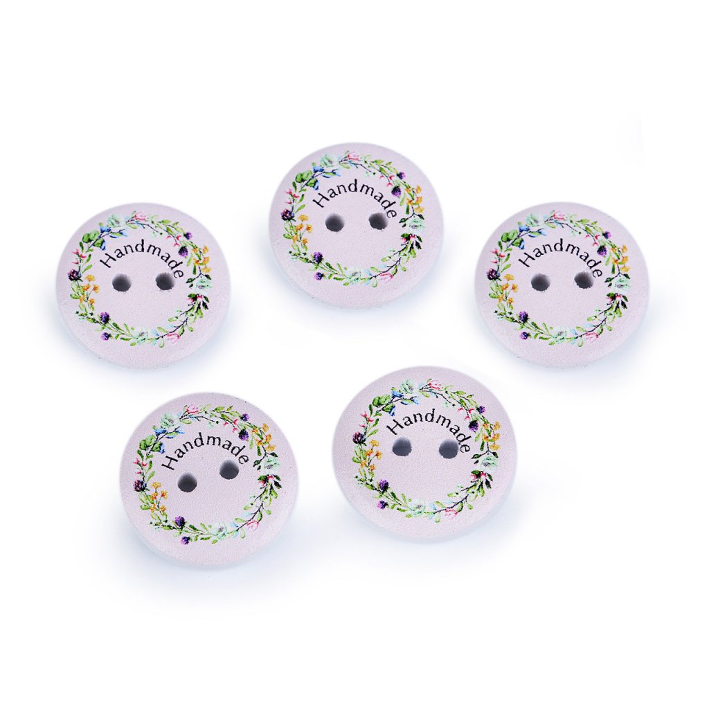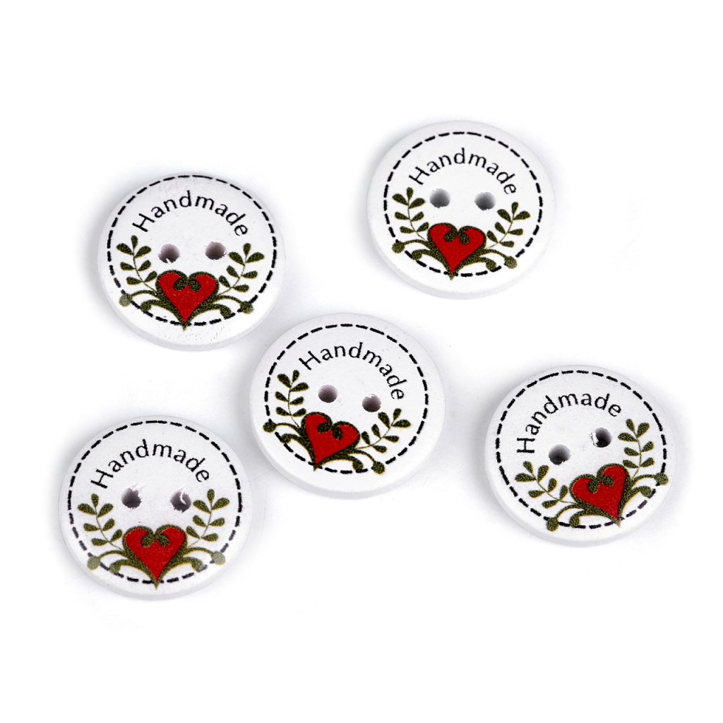 Dekorative Holzknöpfe mit der Aufschrift "Handmade" heben sich von handgefertigten Produkten, Geschenken und verschiedenen Dekorationen ab. Sie können sie auch im Scrapbooking verwenden. Das Motiv ist einseitig.