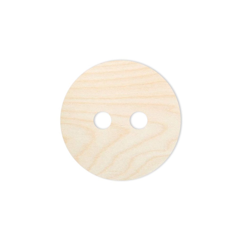 Dekorativer Holzknopf mit zwei Löchern, hergestellt aus 3 mm starkem Birkensperrholz. Sie können Ihre Produkte mit dem Button dekorieren. Der Durchmesser des Knopfes beträgt 20 mm.