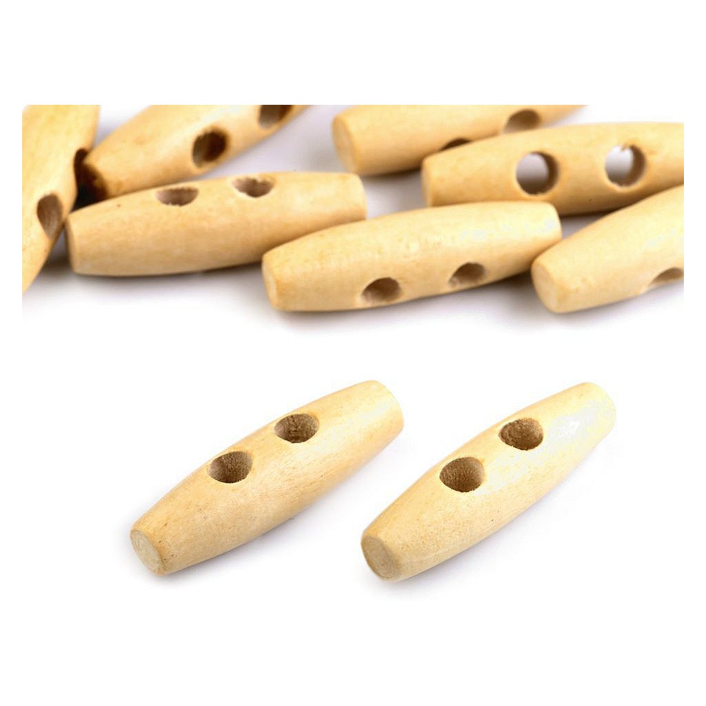 Der naturfarbene Holzknopf besticht durch seine originelle Form. Er eignet sich als Accessoire für Wintermäntel oder Pullover, ist aber nicht waschbar . Der Durchmesser des Lochs beträgt ungefähr 6 mm.