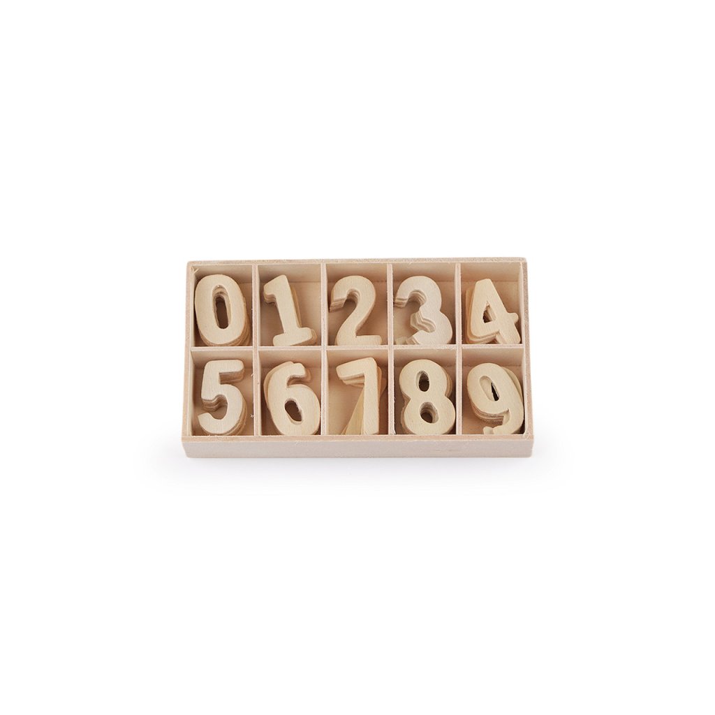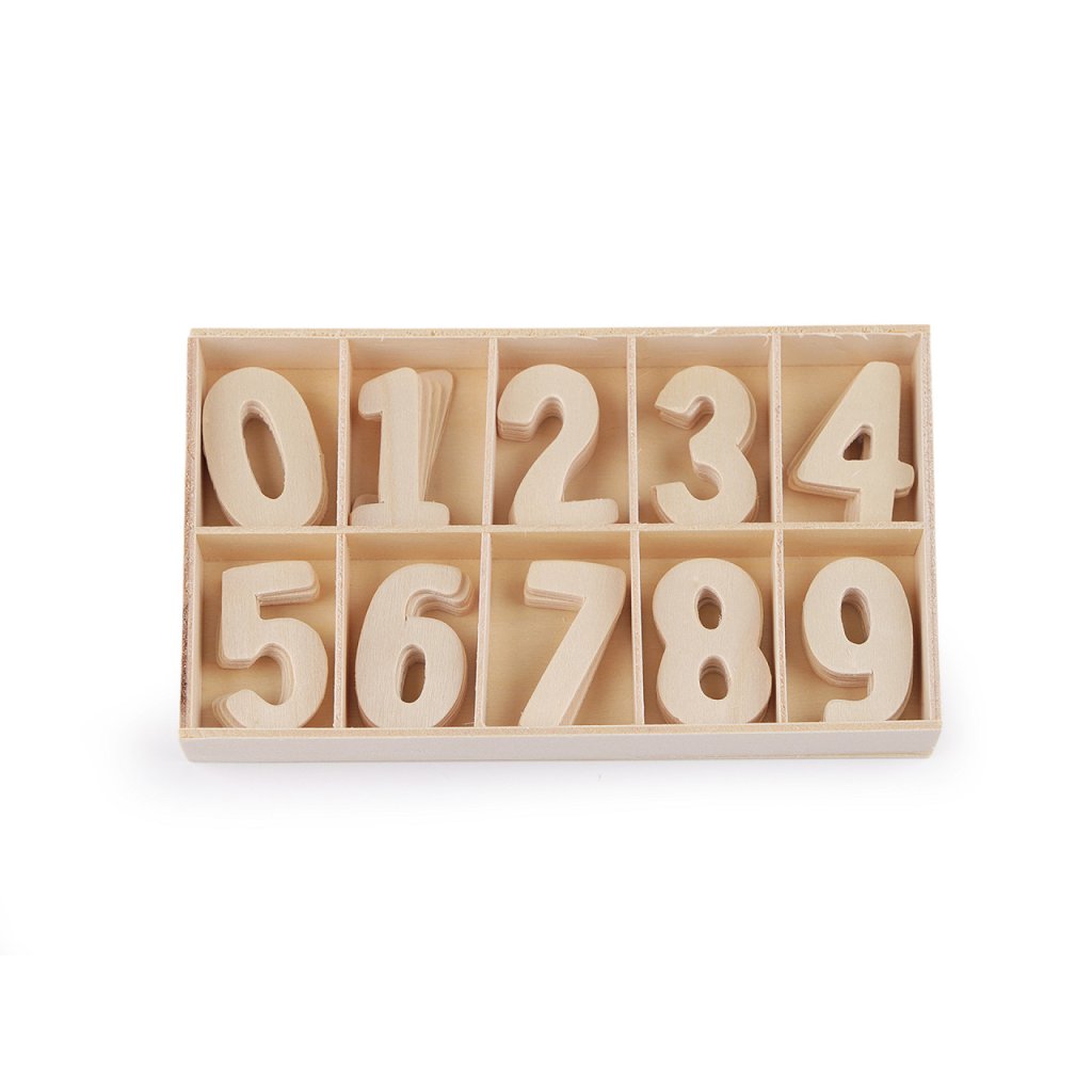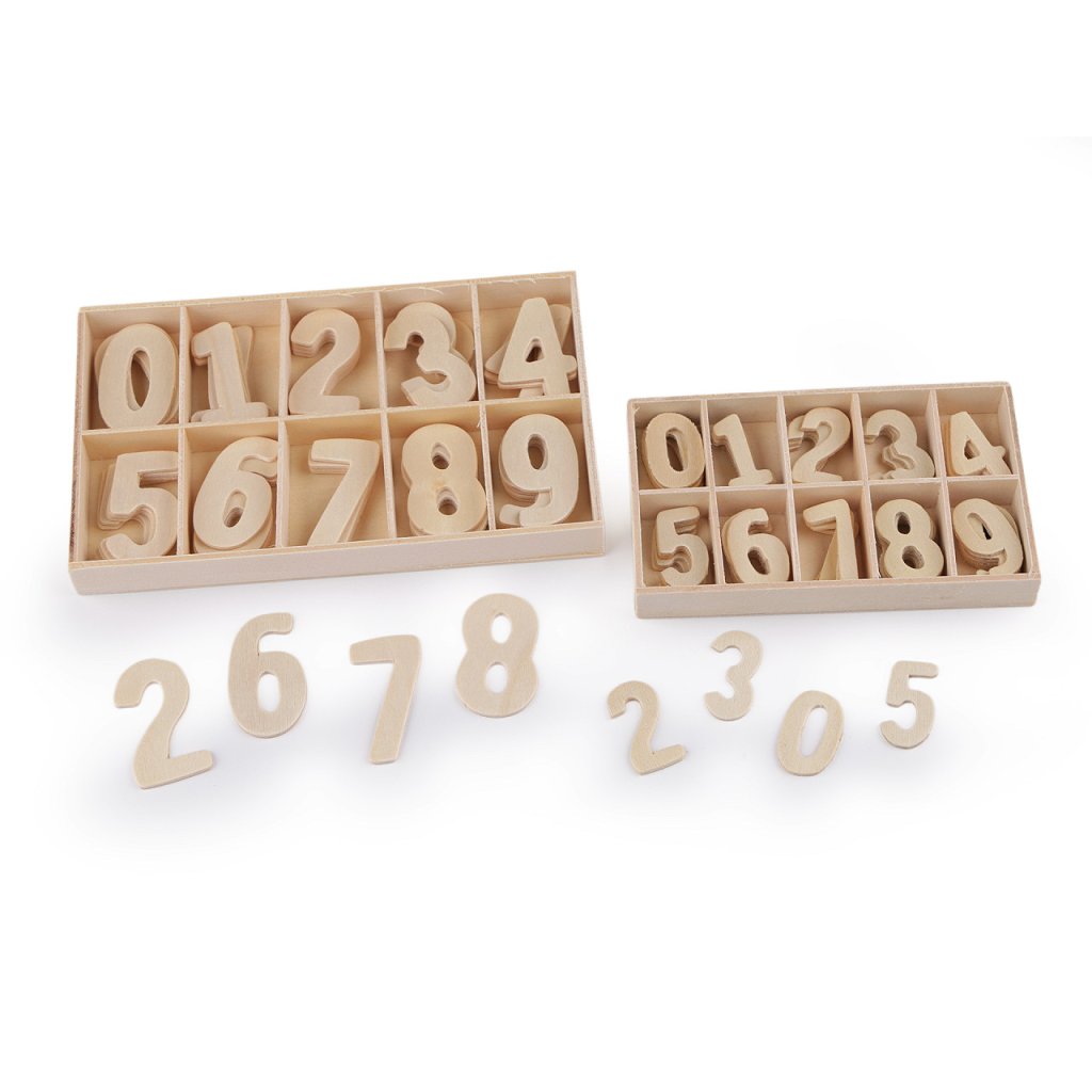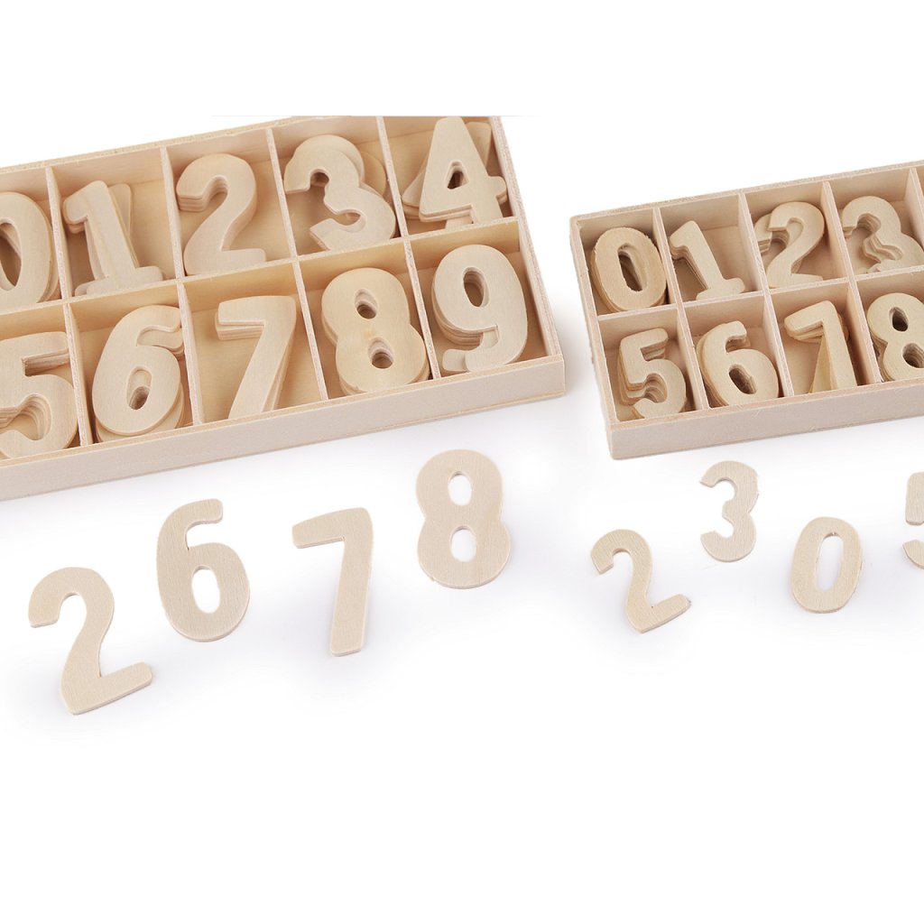 Die Holzzahlen in der Box können zum Aufkleben auf Grußkarten, Rahmen, Tagebücher, Einladungen usw. verwendet werden. Sie sind auch bei Müttern von Erstklässlern beliebt, die sie erfolgreich als unterhaltsames Lehrmittel einsetzen. Auf der Rückseite befinden sich keine Aufkleber, Sie können sie mit doppelseitigem Klebeband oder Klebstoff befestigen. Die Zahlen und die Box bestehen aus Sperrholz und können durch Bemalen, Beizen usw. weiter verändert werden. Das Set beinhaltet die Zahlen von 0 bis 9 , jeweils 5 Stück . Bei Variante Nr. 1 sind die Zahlen ca. 2 x 3,8 cm groß und die Kastenmaße betragen 9 x 14,5 x 1,5 cm. Bei Variante Nr. 2 sind die Zahlen ca. 1,6 x 2,7 cm groß und die Kastenmaße betragen 6,5 x 10,8 x 1,5 cm. Die Dicke der Ziffern beträgt 1,5 mm.