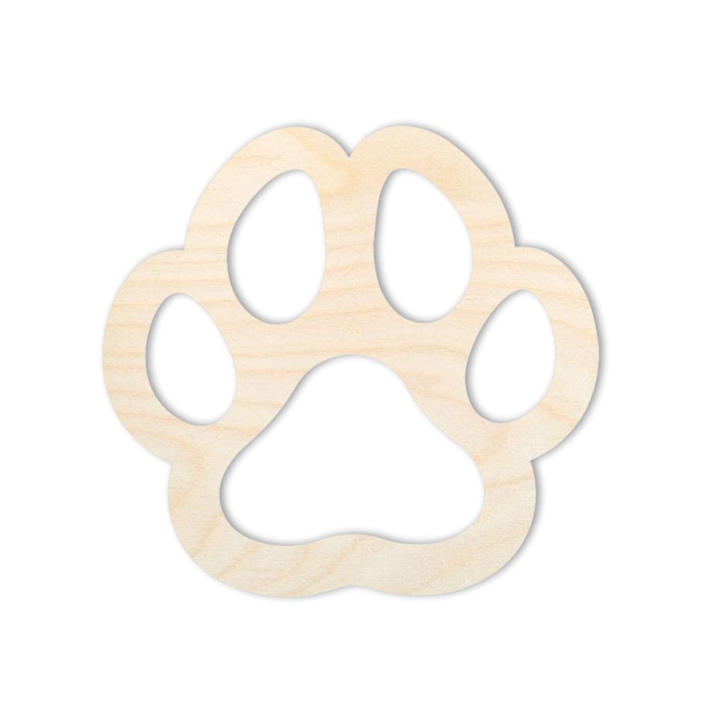 Hundepfote in der Größe 40 x 38 mm aus 3 mm dickem Birkensperrholz geschnitten. Das Produkt ist unbearbeitet und eignet sich zur weiteren Verzierung von Fertigprodukten oder als Dekoration. Wir empfehlen die Verwendung von Acrylfarben zum Malen.