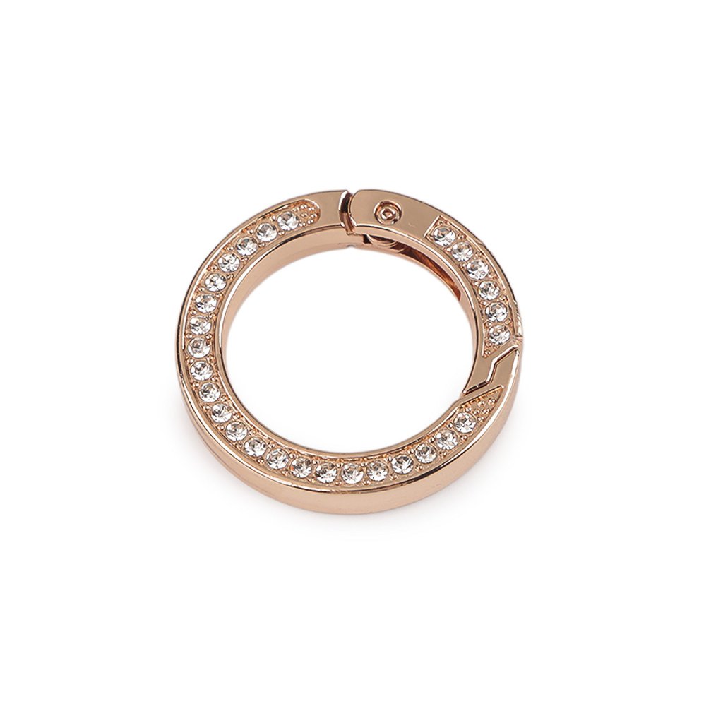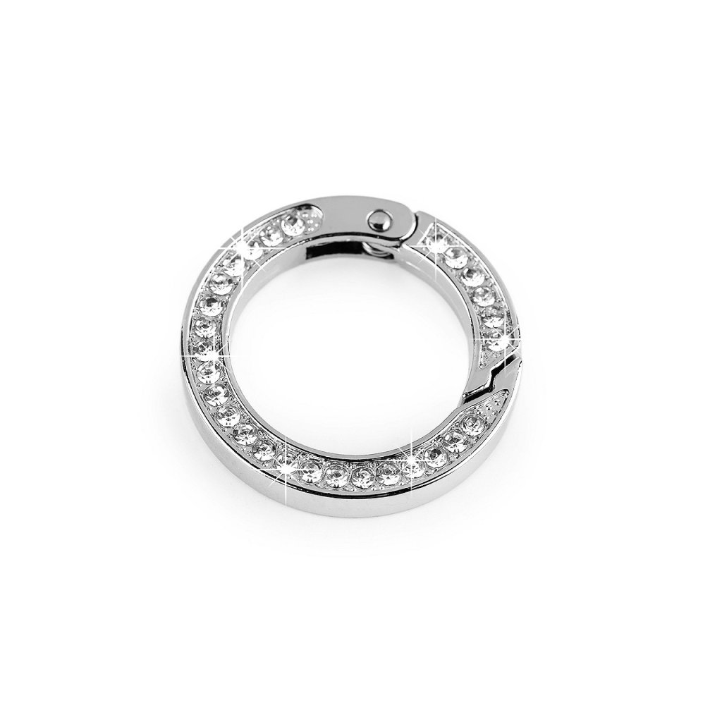 Der runde Karabiner besticht durch sein Design – auf beiden Seiten ist er mit funkelnden Strasssteinen besetzt. Dank seines eleganten Aussehens eignet es sich für Handtaschen und Aktentaschen. Sie können es jedoch auch als Schlüsselanhänger verwenden. Das Profil des Karabiners ist nicht rund, sondern eckig.