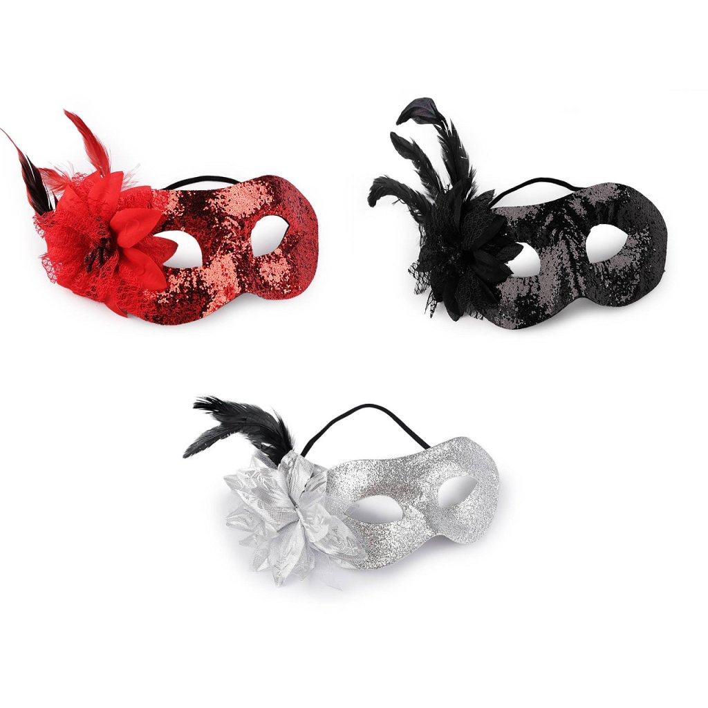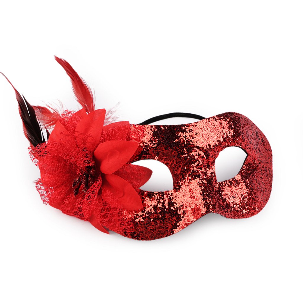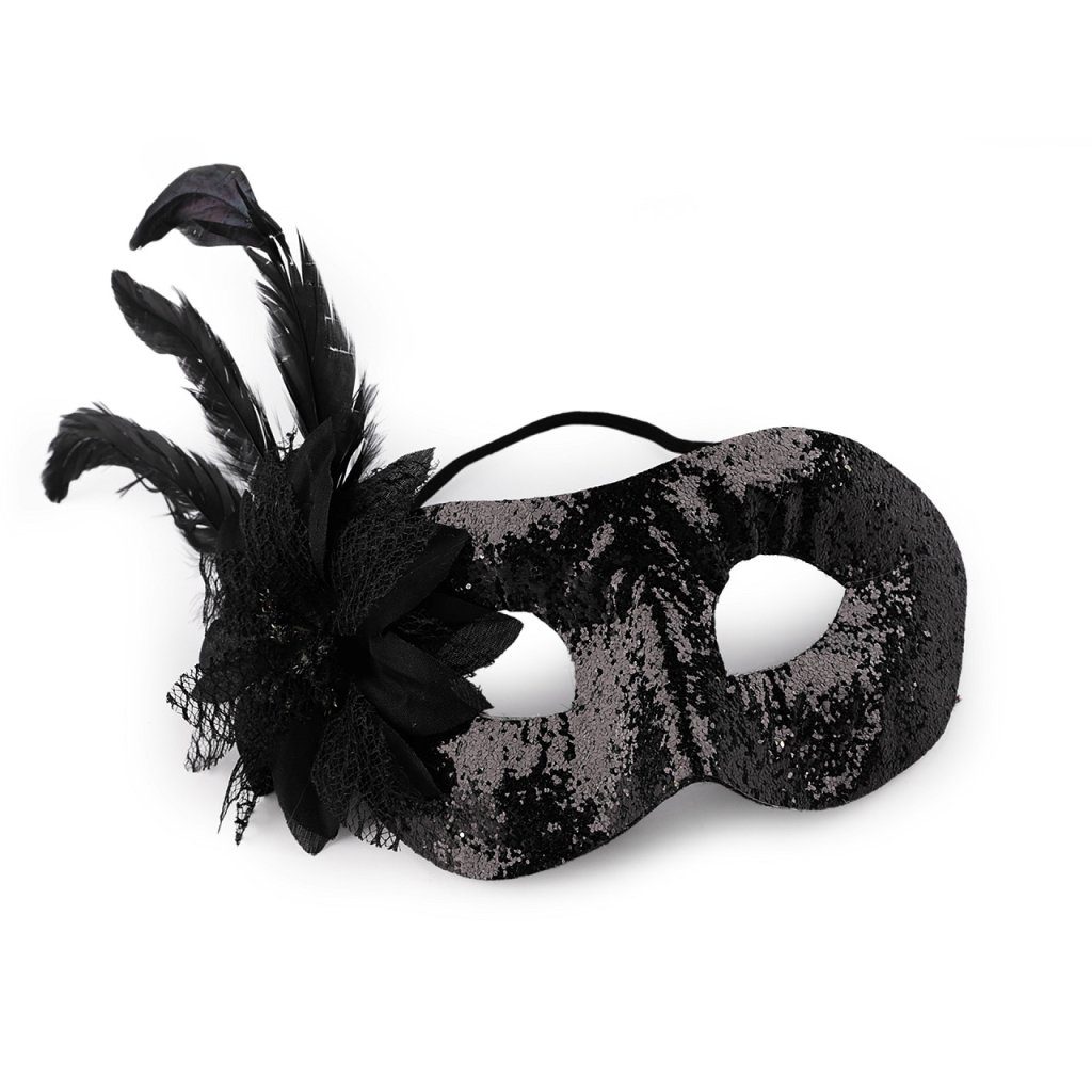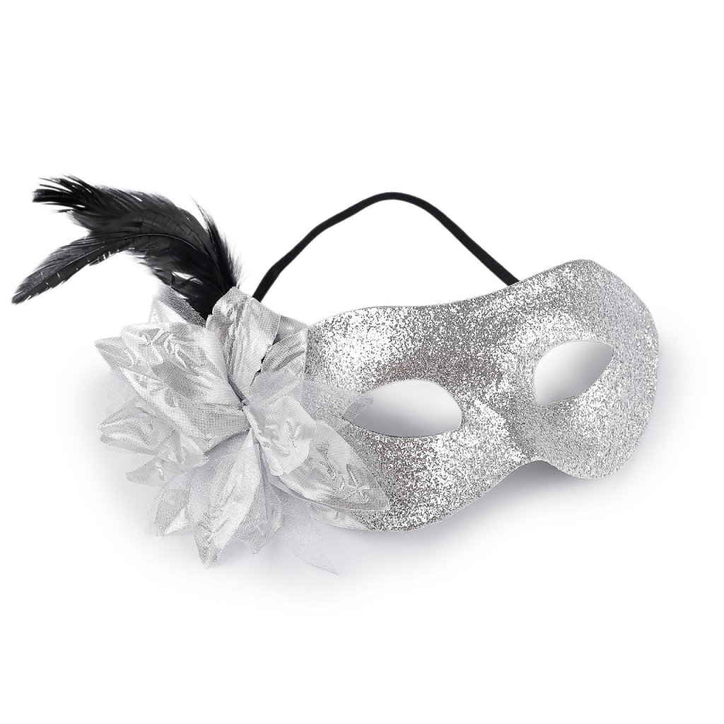 Die Karnevals-Augenmaske verleiht Ihnen einen geheimnisvollen und verführerischen Blick. Sie können sie für verschiedene Feste, Partys, Karneval usw. verwenden. Die Augenmaske ist vollständig mit funkelndem Glitter bedeckt. Ihre Seite ist mit einer Textilblume und Federn verziert. Dank des elastischen Bandes sitzt es perfekt auf dem Gesicht.