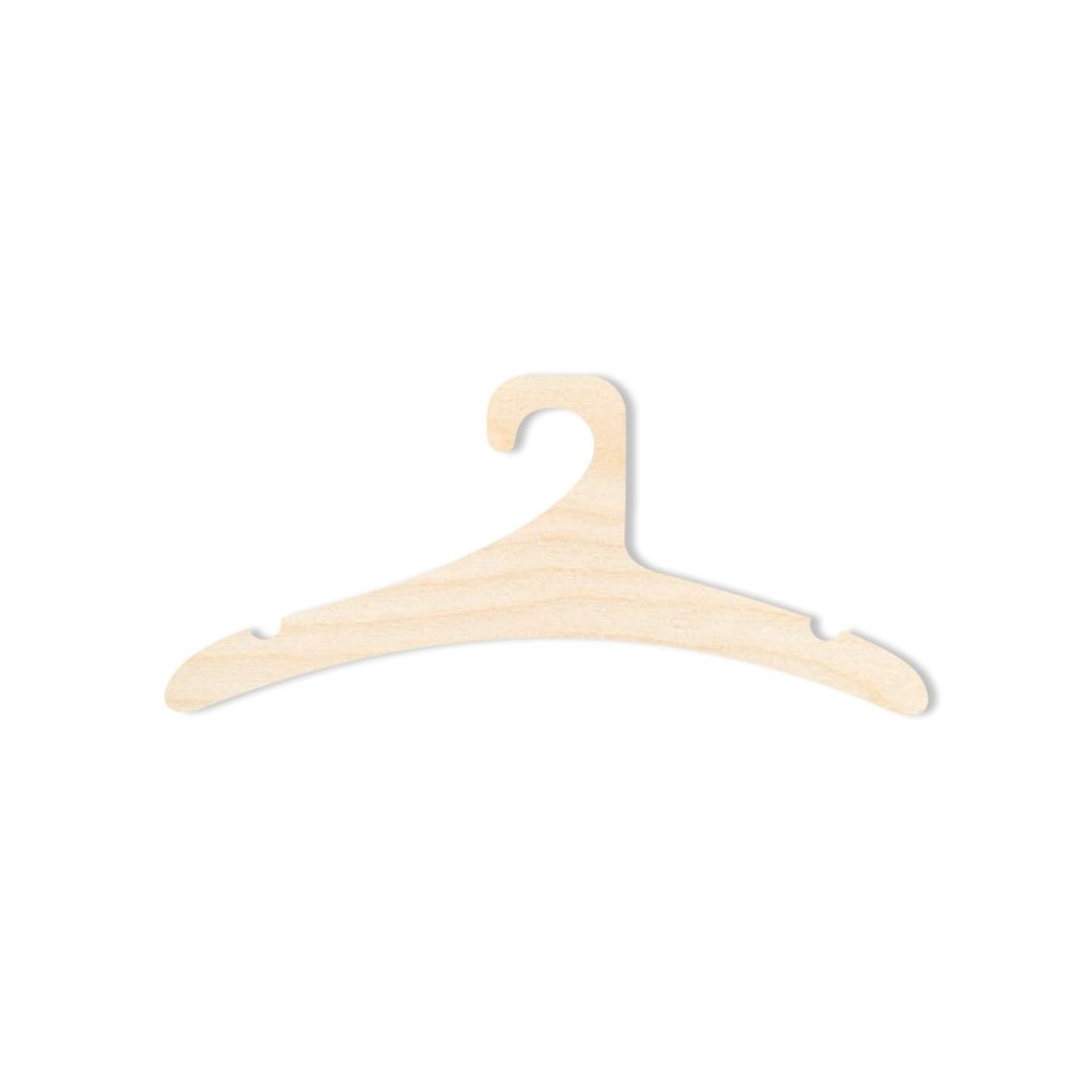 Geschnitzter Puppenkleiderbügel aus Sperrholz, der sich zur weiteren Dekoration, zum Beizen oder Bemalen, zum Beispiel mit Acrylfarben, eignet. Der Aufhänger ist aus 3 mm starkem Birkensperrholz gefertigt.
