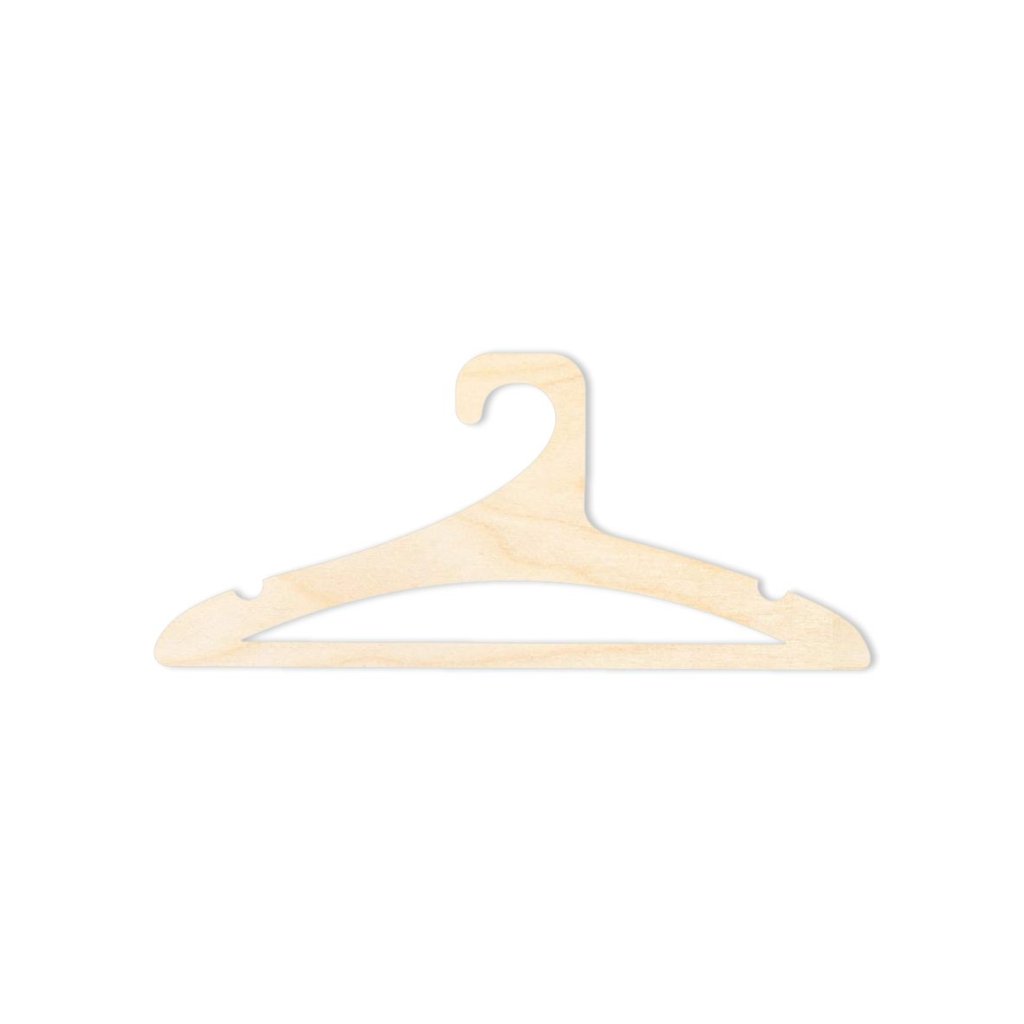 Geschnitzter Puppenkleiderbügel aus Sperrholz, der sich zur weiteren Dekoration, zum Beizen oder Bemalen, zum Beispiel mit Acrylfarben, eignet. Der Aufhänger ist aus 3 mm starkem Birkensperrholz gefertigt.