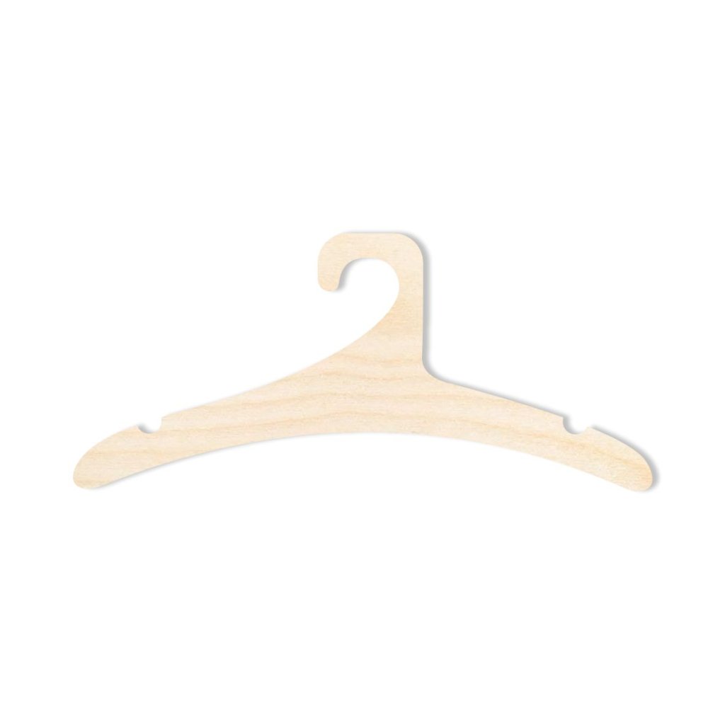 Geschnitzter Puppenkleiderbügel aus Sperrholz, der sich zur weiteren Dekoration, zum Beizen oder Bemalen, zum Beispiel mit Acrylfarben, eignet. Der Aufhänger ist aus 3 mm starkem Birkensperrholz gefertigt.