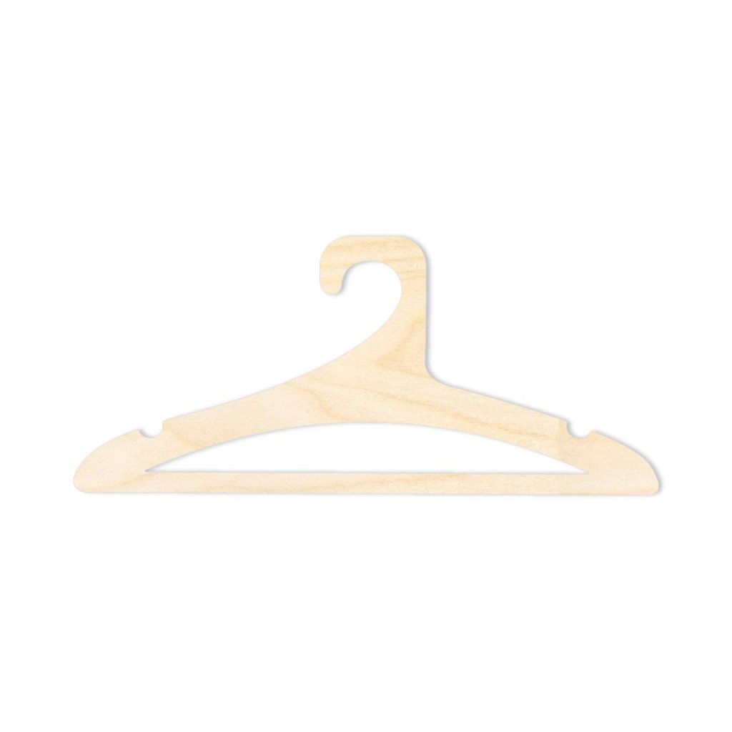 Geschnitzter Puppenkleiderbügel aus Sperrholz, der sich zur weiteren Dekoration, zum Beizen oder Bemalen, zum Beispiel mit Acrylfarben, eignet. Der Aufhänger ist aus 3 mm starkem Birkensperrholz gefertigt.