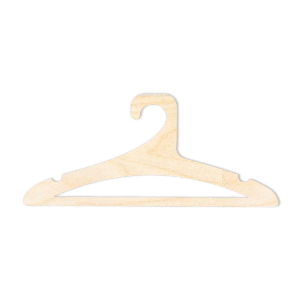 Geschnitzter Puppenkleiderbügel aus Sperrholz, der sich zur weiteren Dekoration, zum Beizen oder Bemalen, zum Beispiel mit Acrylfarben, eignet. Der Aufhänger ist aus 3 mm starkem Birkensperrholz gefertigt.