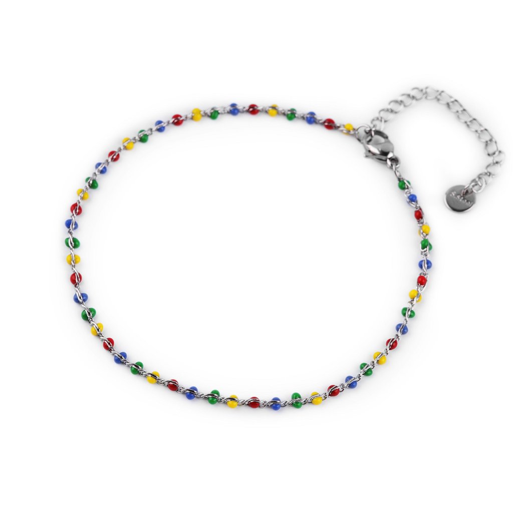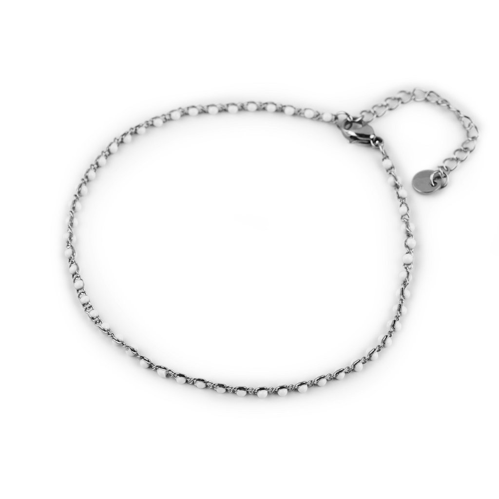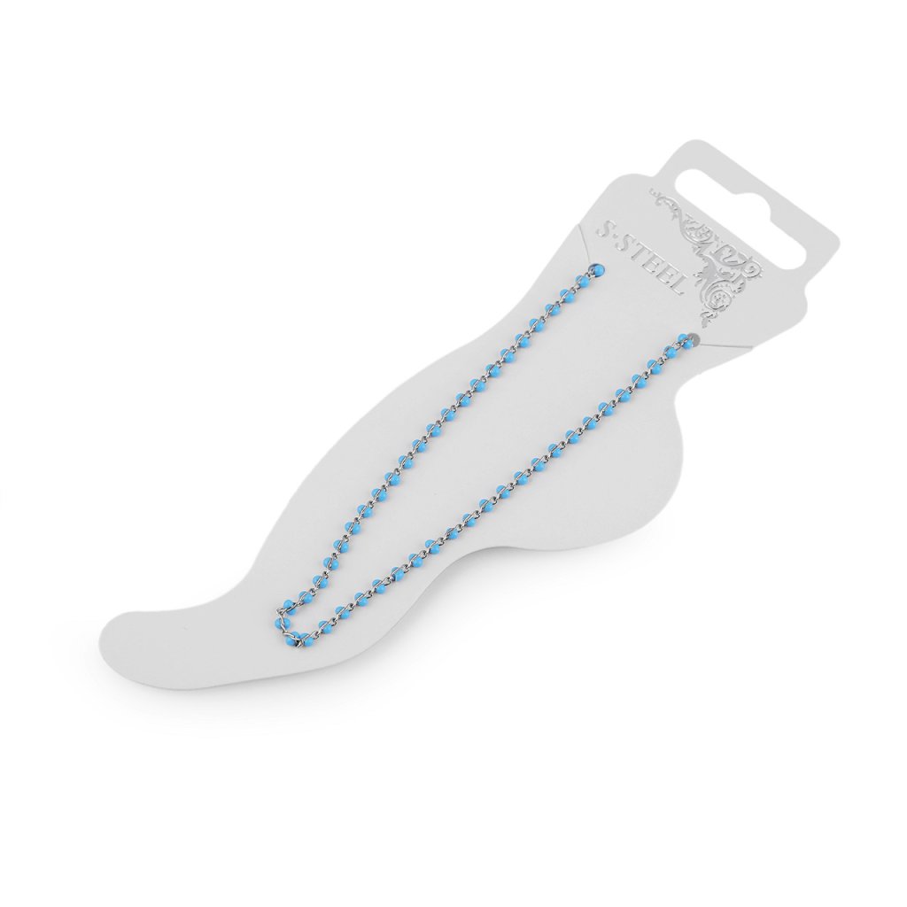 Das Fußkettchen mit Perlen ist aus hochwertigem Edelstahl gefertigt. Es hat eine sanfte und auffällige Wirkung und eignet sich als frische Ergänzung für den Alltag. Befestigung mittels Karabiner und Verlängerungskette.