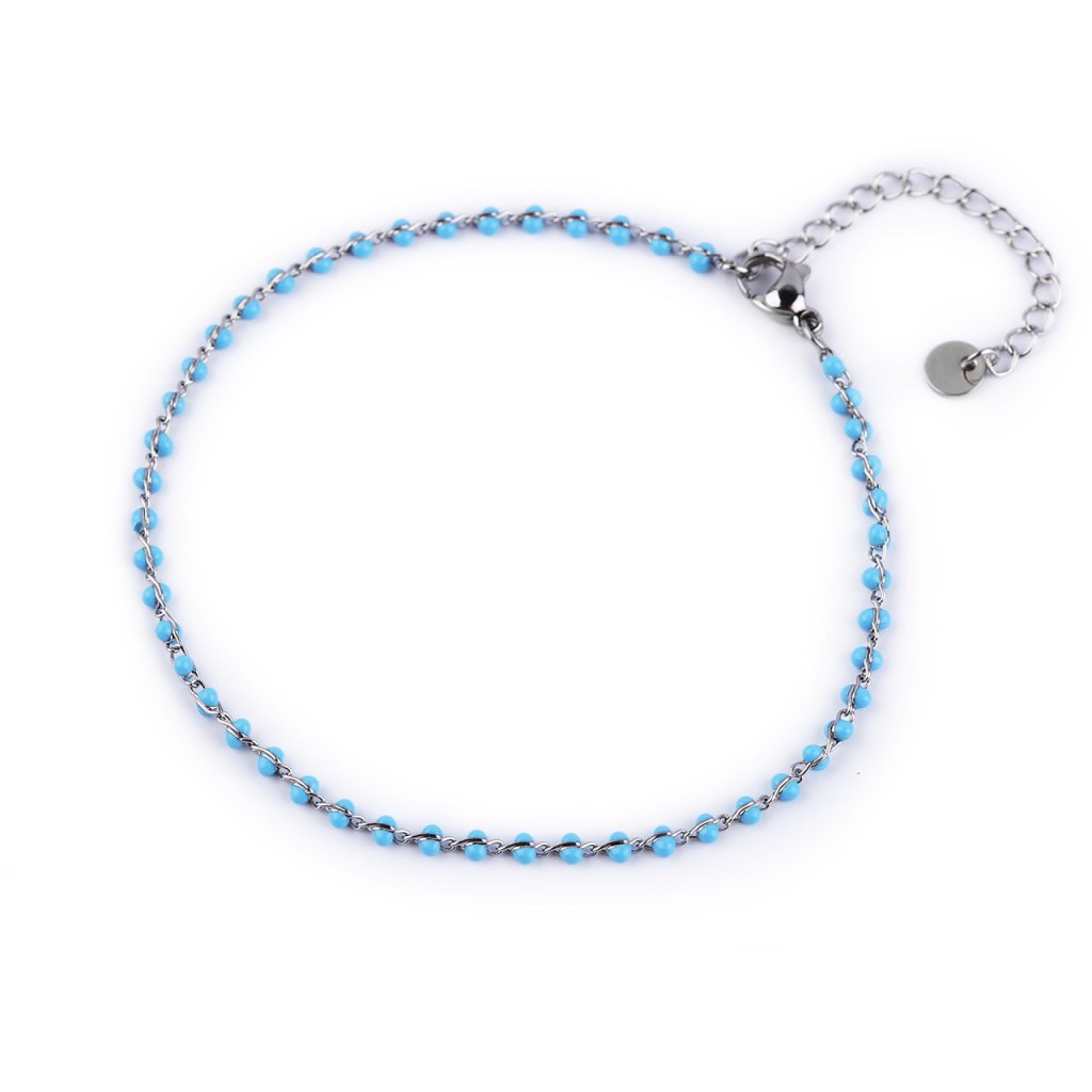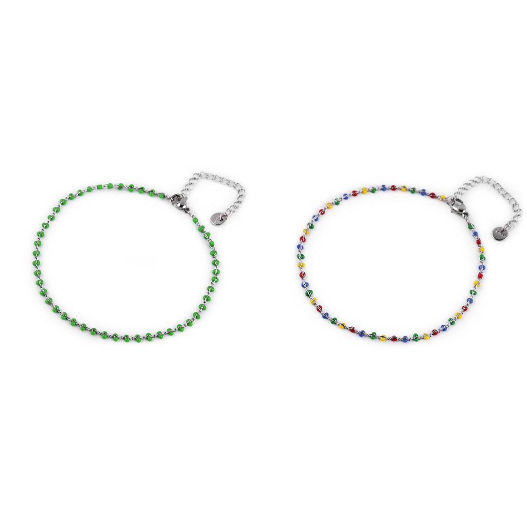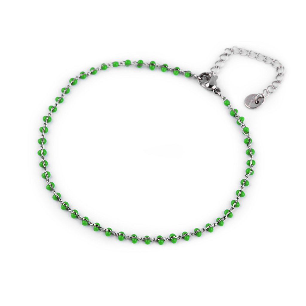 Das Fußkettchen mit Perlen ist aus hochwertigem Edelstahl gefertigt. Es hat eine sanfte und auffällige Wirkung und eignet sich als frische Ergänzung für den Alltag. Befestigung mittels Karabiner und Verlängerungskette.
