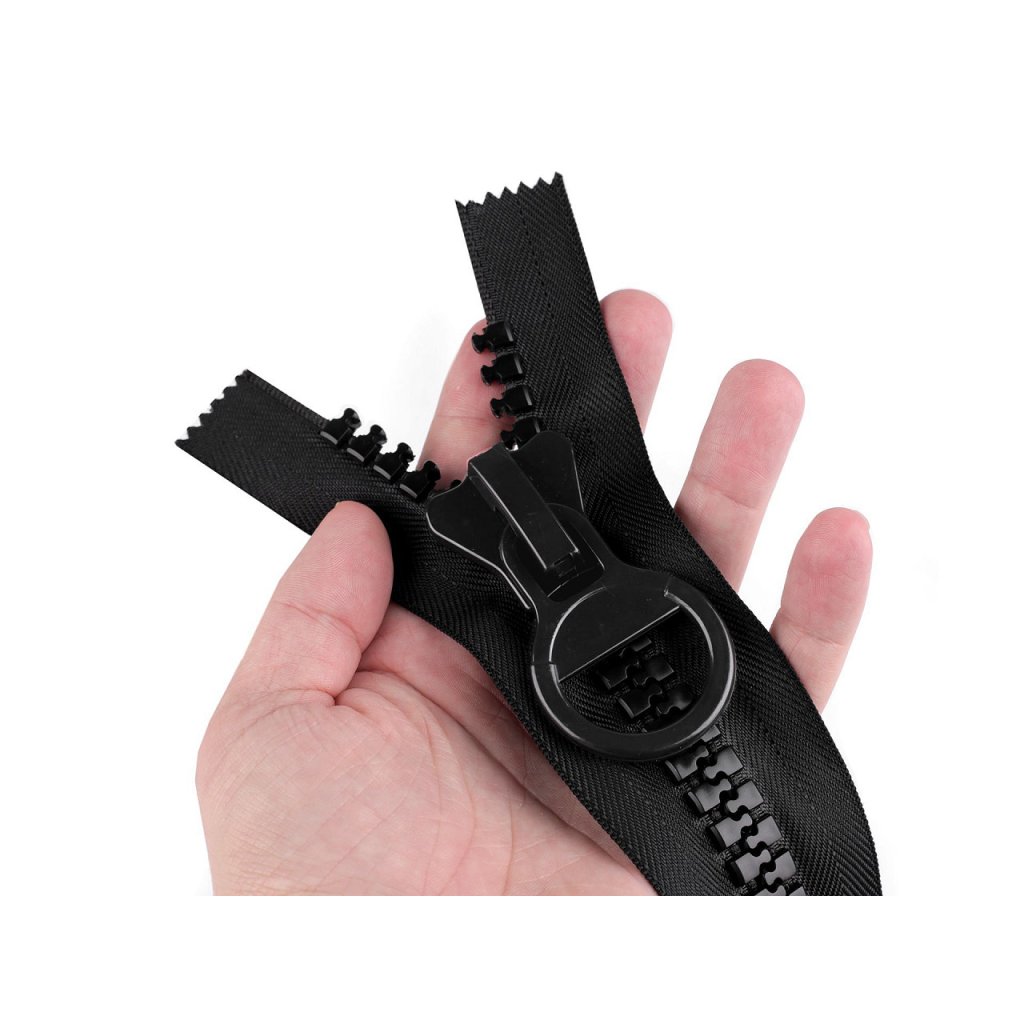 Der Kunststoffreißverschluss besticht durch seine unkonventionelle Größe . Wenn Sie gerne auffallen, können Sie es auf Jacken, Mäntel oder übergroße Sweatshirts nähen. Die Zähne sind aus Kunststoff. Auch am Reißverschluss kommt ein großer Schieber mit rundem Schieber zur Geltung. Der Reißverschluss muss im oberen Teil eingenäht sein, sonst rutscht der Schieber heraus. Es hat an dieser Stelle kein Ende.