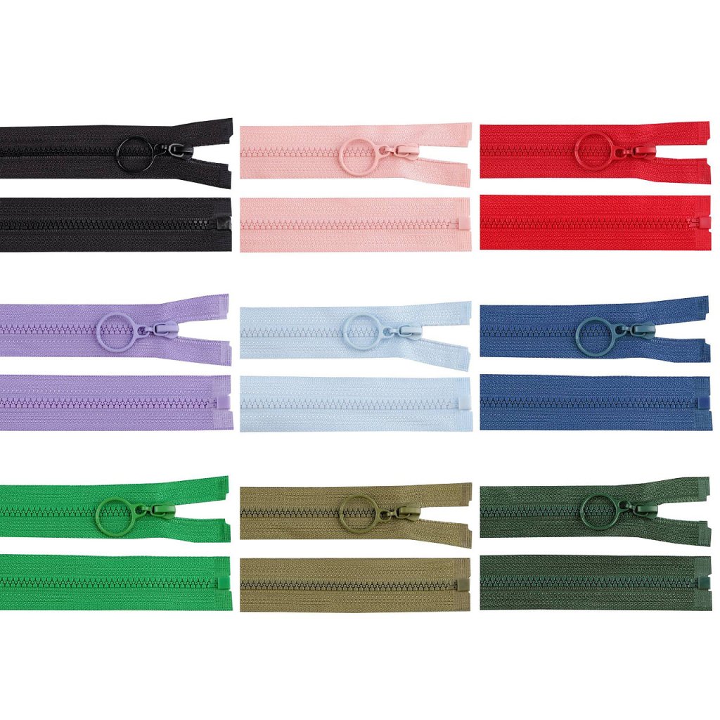 Der Kunststoffreißverschluss ist offen. Er wird für Kinderjacken, Mäntel, Sweatshirts usw. verwendet. Der Abzieher hat eine runde Form und ist einfach zu handhaben.