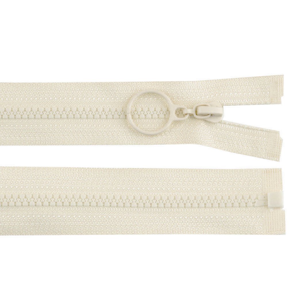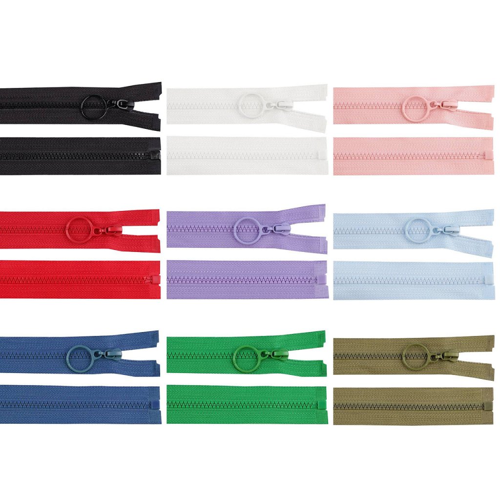 Der Kunststoffreißverschluss ist offen. Er wird für Kinderjacken, Mäntel, Sweatshirts usw. verwendet. Der Abzieher hat eine runde Form und ist einfach zu handhaben.