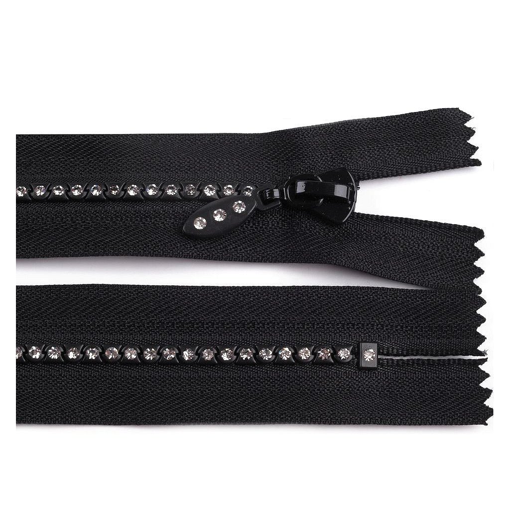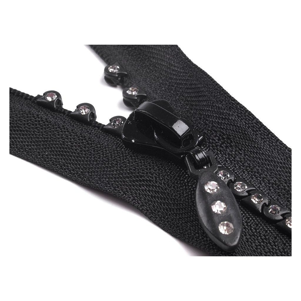 Reißverschluss ist mit glänzenden Strasssteinchen verziert. Er sieht perfekt am Gesellschaftskleid oder an den Blusen aus.