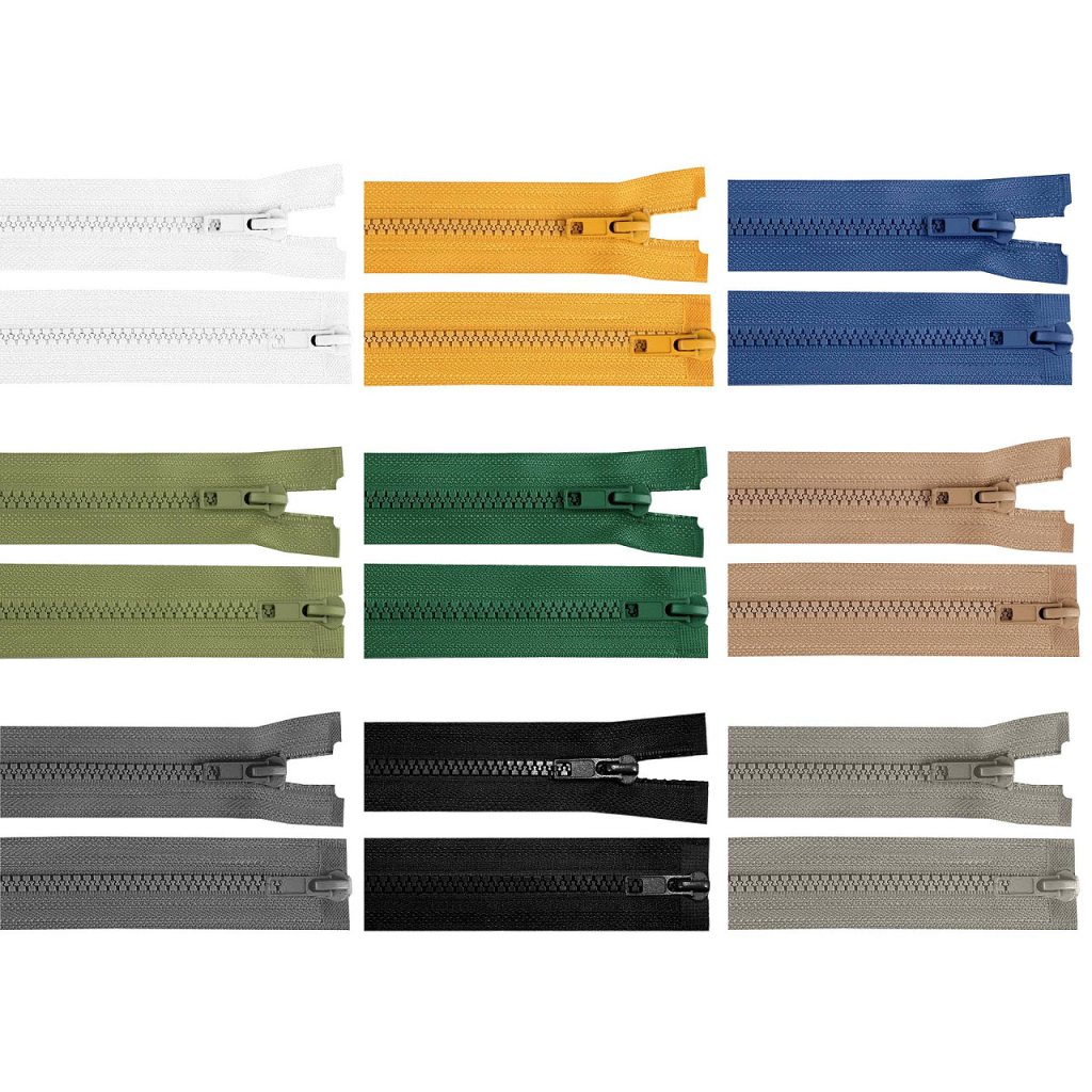 Kunststoff-Reißverschluss mit 2 Zippern lässt sich von beiden Seiten öffnen. Ideal für Jacken oder längere Mäntel.