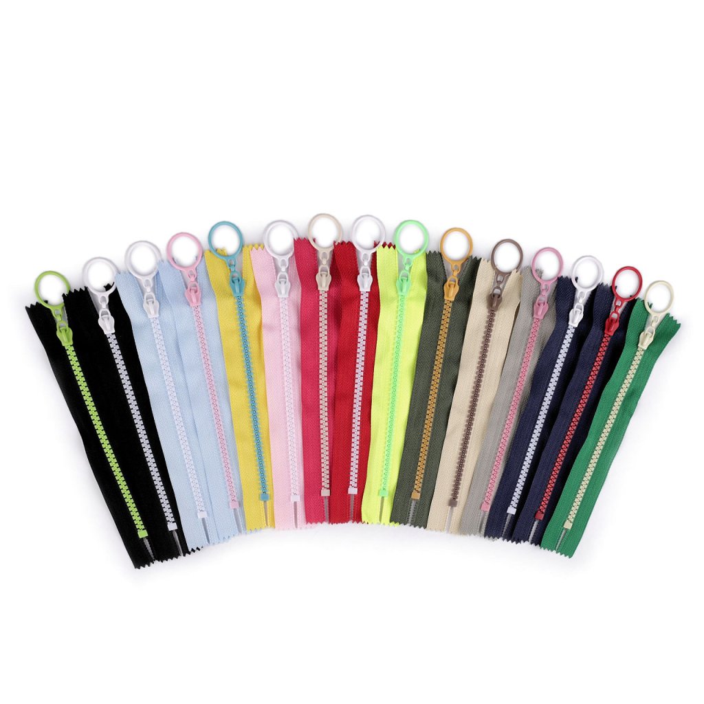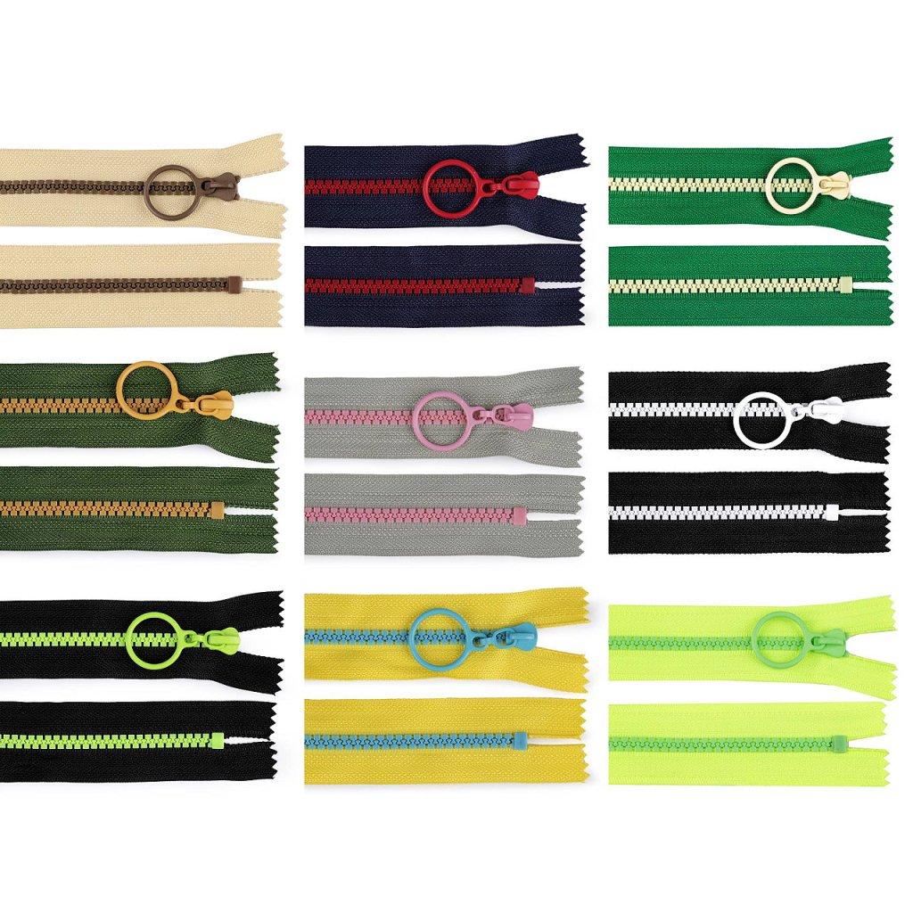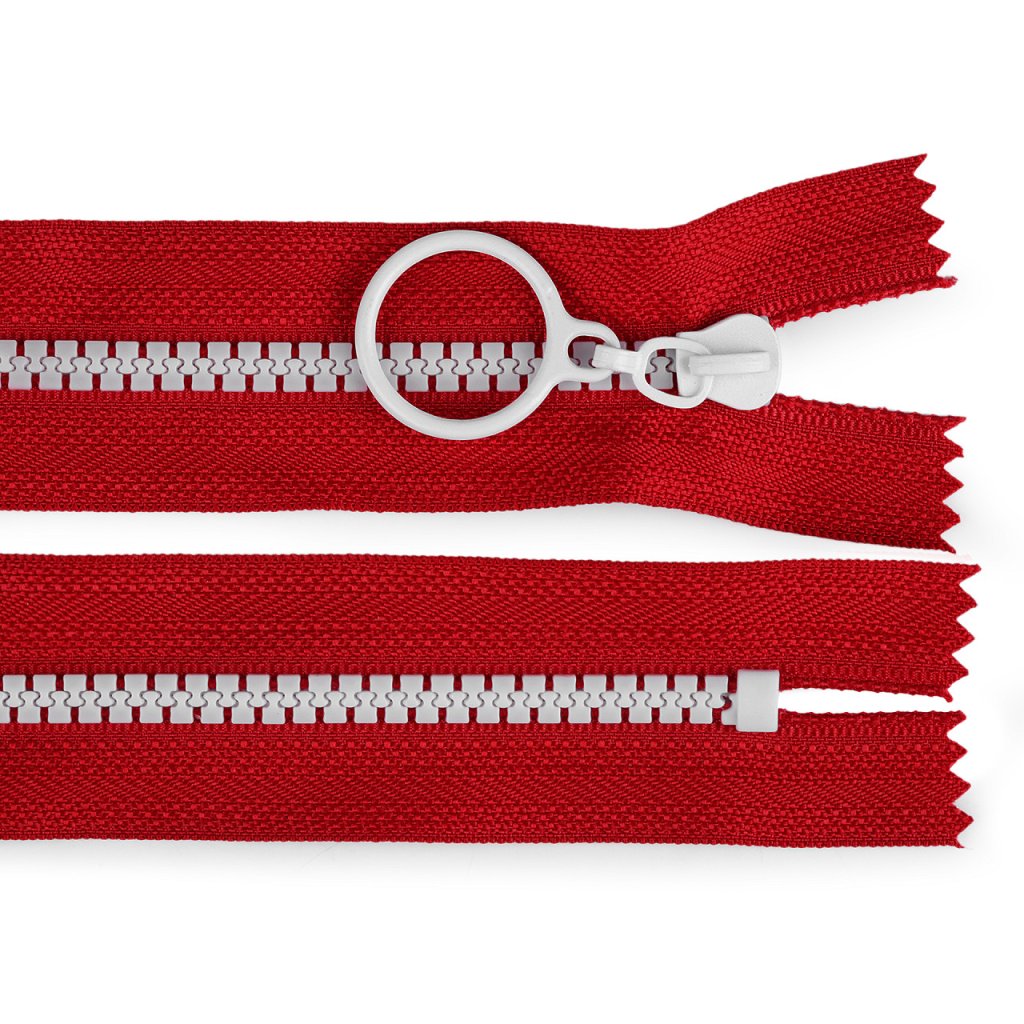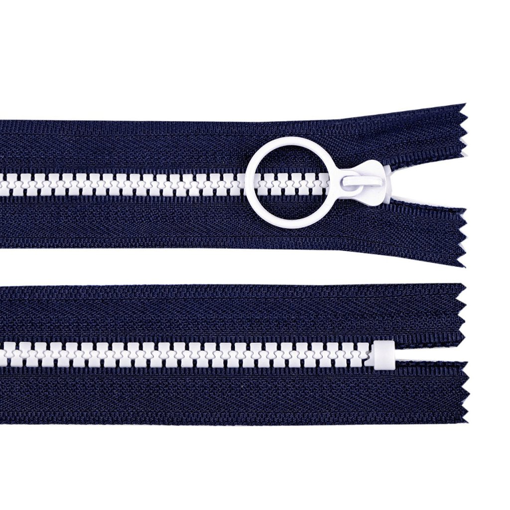 Den unteilbaren Reißverschluss aus Kunststoff können Sie für kleinere Taschen oder Koffer verwenden. Schieber und Zähne heben sich farblich vom Reißverschluss selbst ab.