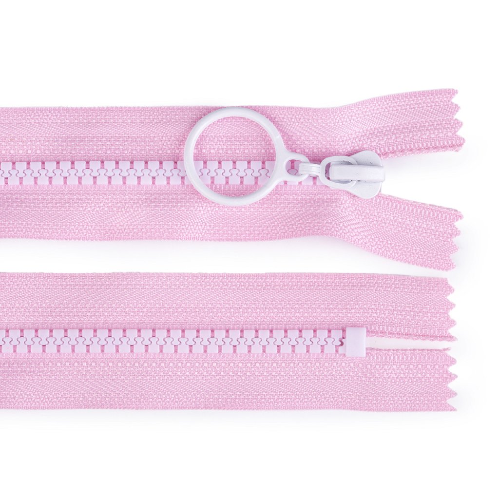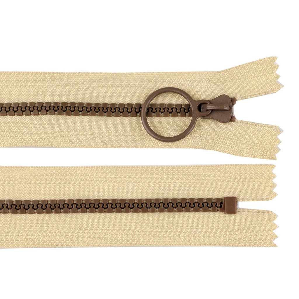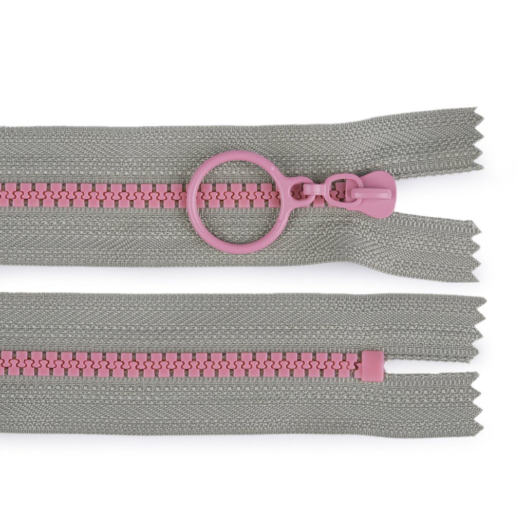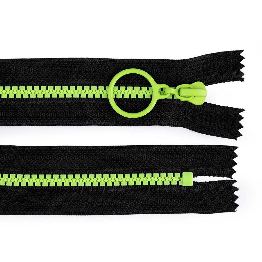 Den unteilbaren Reißverschluss aus Kunststoff können Sie für kleinere Taschen oder Koffer verwenden. Schieber und Zähne heben sich farblich vom Reißverschluss selbst ab.