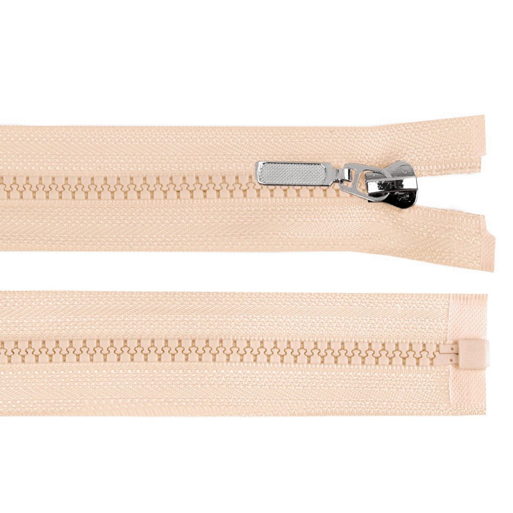Zum Annähen von Jacken oder Mänteln eignet sich ein Kunststoffreißverschluss mit Metallschieber .