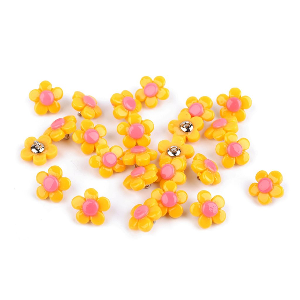 Knöpfe in Blumenform ergänzen Kleidung und Accessoires auf hübsche Weise. Sie fallen auf Pullovern, Kleidern, Blusen, Frühlings- und Sommerjacken, Rucksäcken und Taschen auf. Sie haben eine untere Naht in Form einer Metallöse. Die Größen der Buttons könnt ihr dieser Tabelle entnehmen.