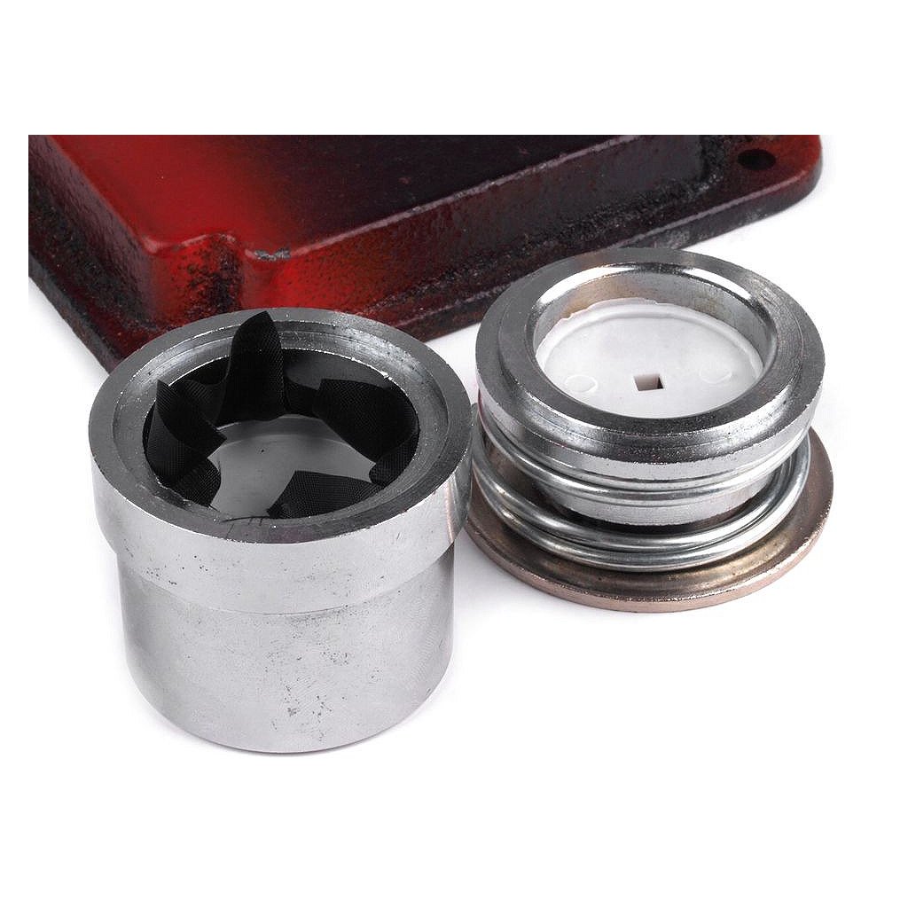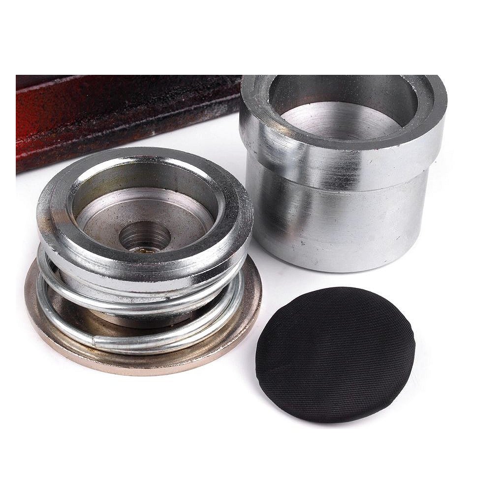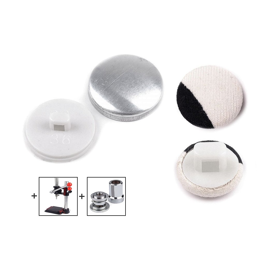Knopf zum Beziehen besteht aus einem Metall- und Kunststoffteil. Zum Beziehen können verschiedene Materialien benutzt werden. Somit kann man effektvolle Verzierung von Bekleidung bilden.Zum Beziehen von Knöpfen braucht man eine Pressmaschine und einen Ausatz (Artikel-Nummer 090859). Tabelle für Knöpfengröße: