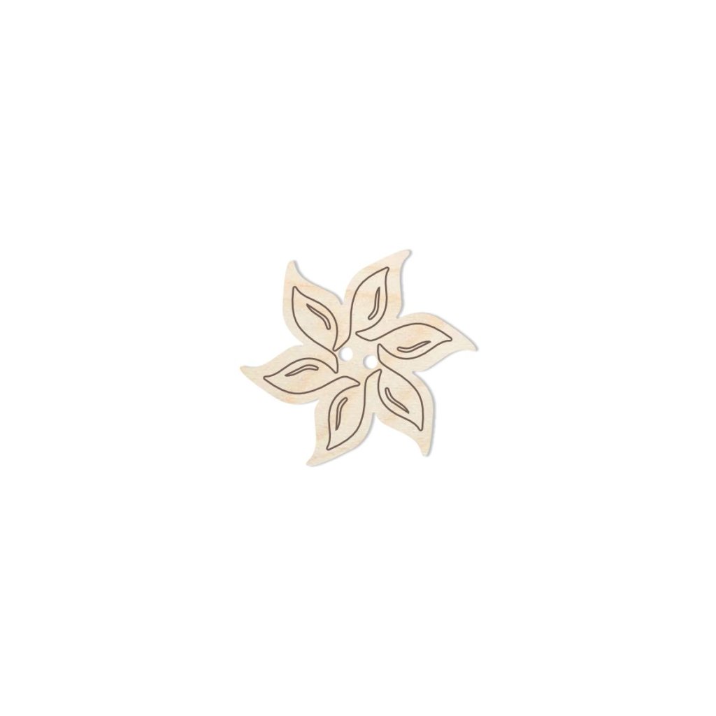 Dekorativer Holzknopf in Form einer Blume, hergestellt aus 3 mm starkem Birkensperrholz. Sie können Ihre Produkte mit dem Button dekorieren.