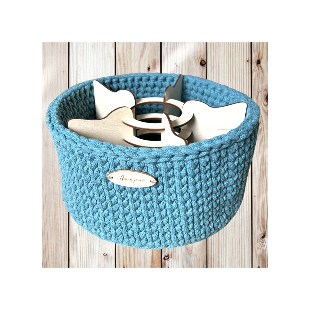 Das Produkt wird zerlegt geliefert, sodass Sie den Korb bequem häkeln und anschließend den Einsatz in den fertigen Korb einsetzen können. Wir empfehlen, die Verbindungen mit Holzleim oder einer Heißklebepistole zu fixieren.