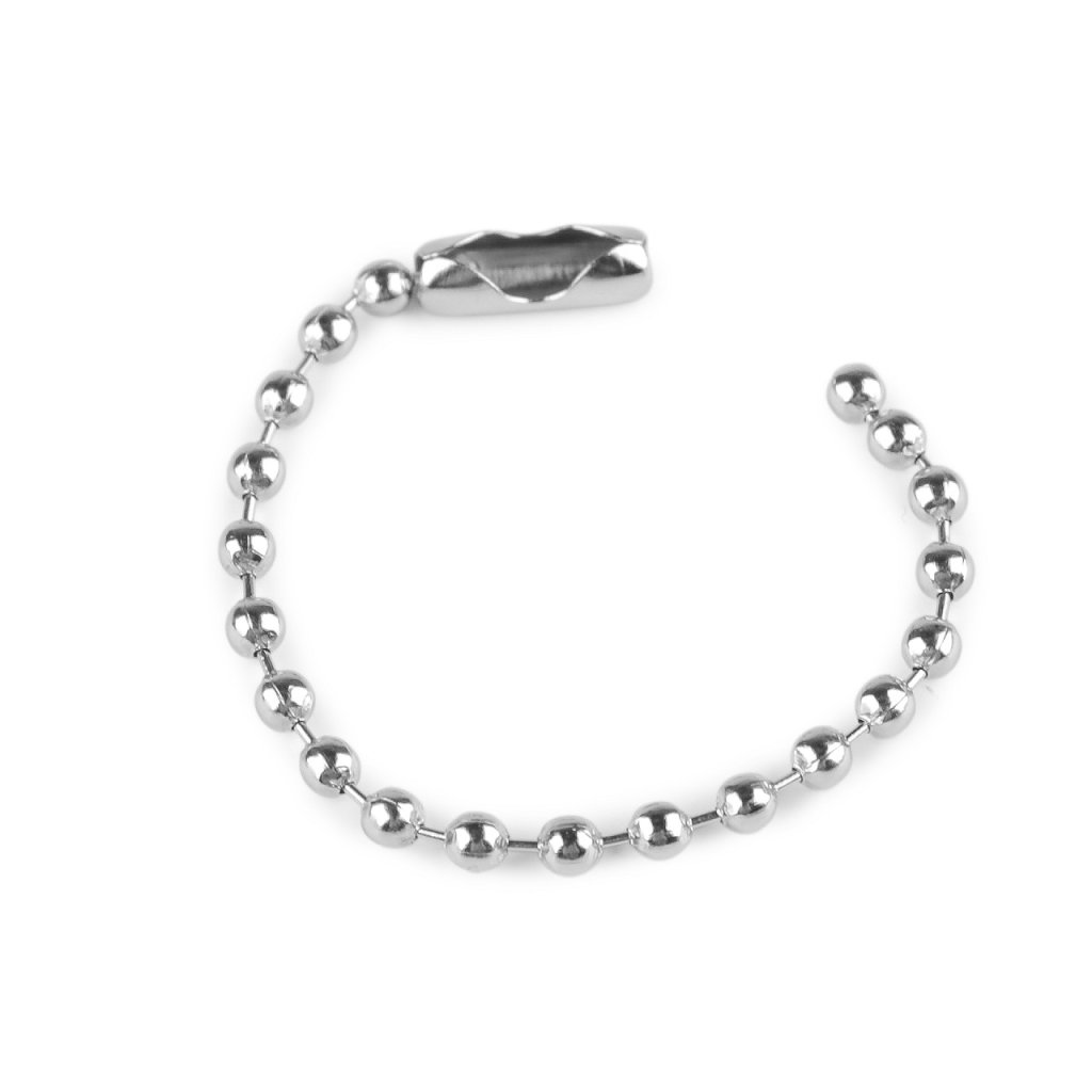 Mit der Kugelkette können Sie Anhänger an Handtaschen, Taschen oder als Schlaufe für Mäntel, Sweatshirts, Jacken etc. befestigen. Sie eignet sich auch als Kleideranhänger, wenn eine Nadel aufgrund von Stoffschäden nicht verwendet werden kann. Die Befestigung erfolgt einfach durch Einhängen der Kugel in die Öse. Die Kugeln haben einen Durchmesser von 2 mm.