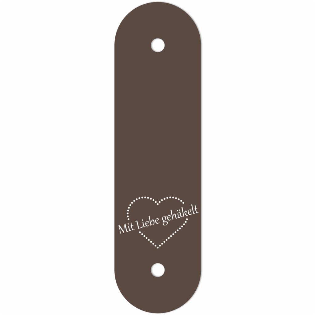 Kunstlederlabel – Mit Liebe gehäkelt (oberer Rand), Braun