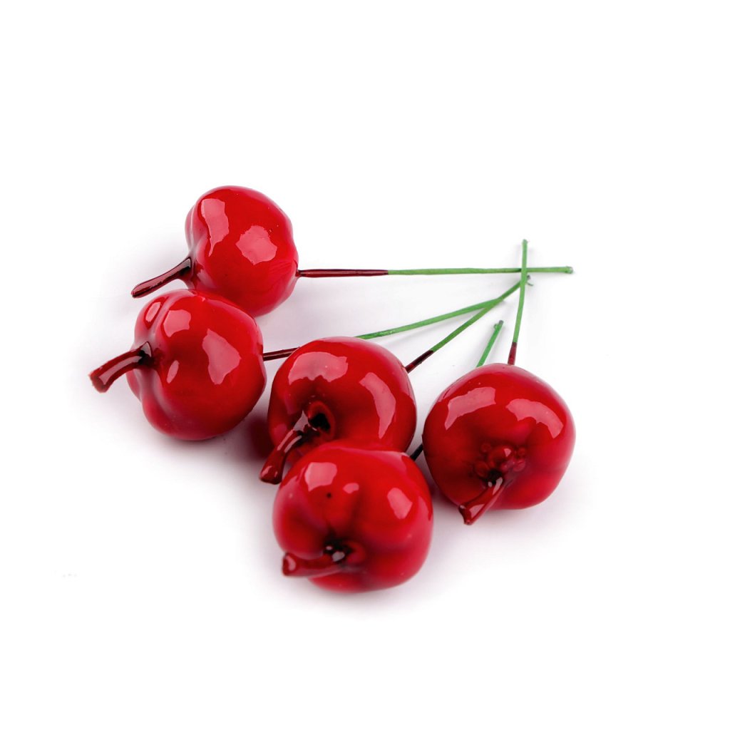 Kleine Deko-Äpfel sind auf einem Draht befestigt, der sich ganz einfach formen lässt. Sie können diese zum Beispiel in Styroporformen, Kränze, Gestecke usw. stecken.