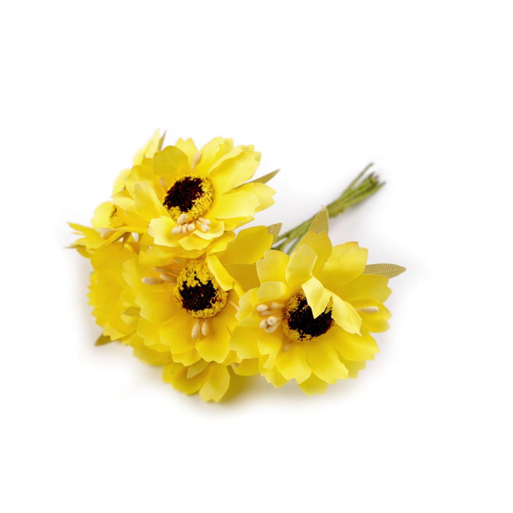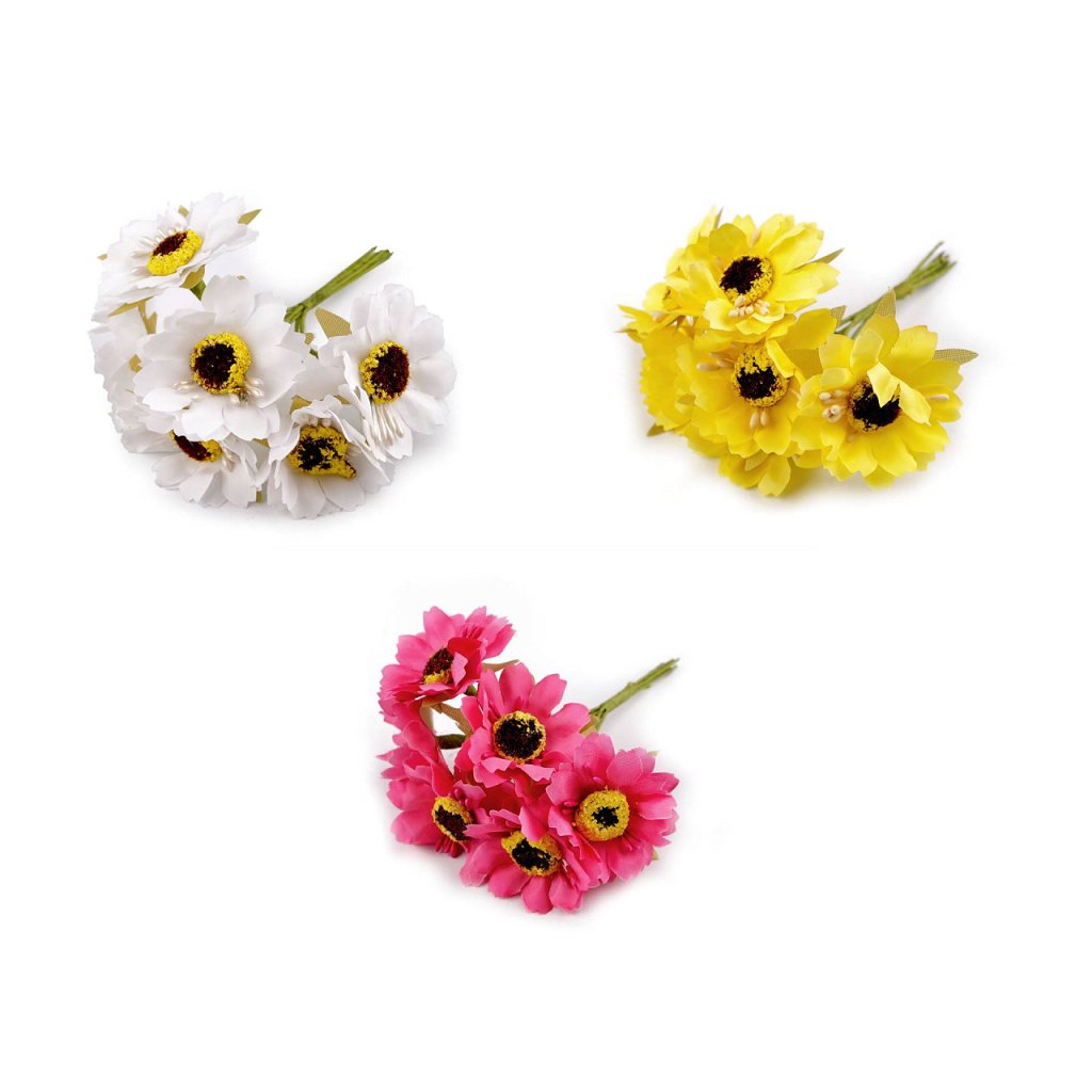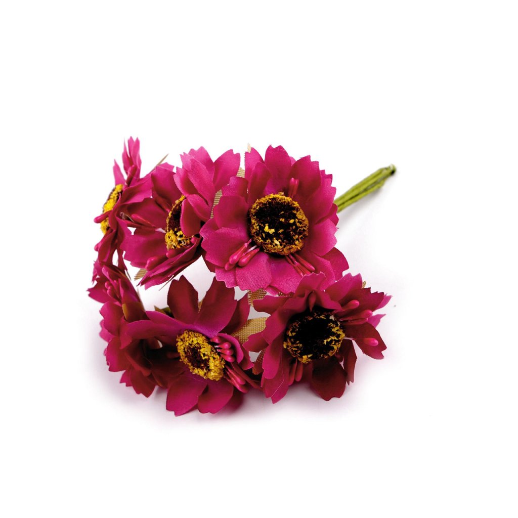 Künstliche Blumen mit Blütenstempel sind an einem Draht befestigt, der mit Floristikband umwickelt ist. Sie können sie leicht biegen und formen. Sie können sie zur Herstellung von Hochzeitsdüften oder zum Verzieren von Stirnbändern, Kränzen, Blumentöpfen usw. verwenden. Je 6 Blütenstücke werden zu einem Bündel zusammengefasst.
