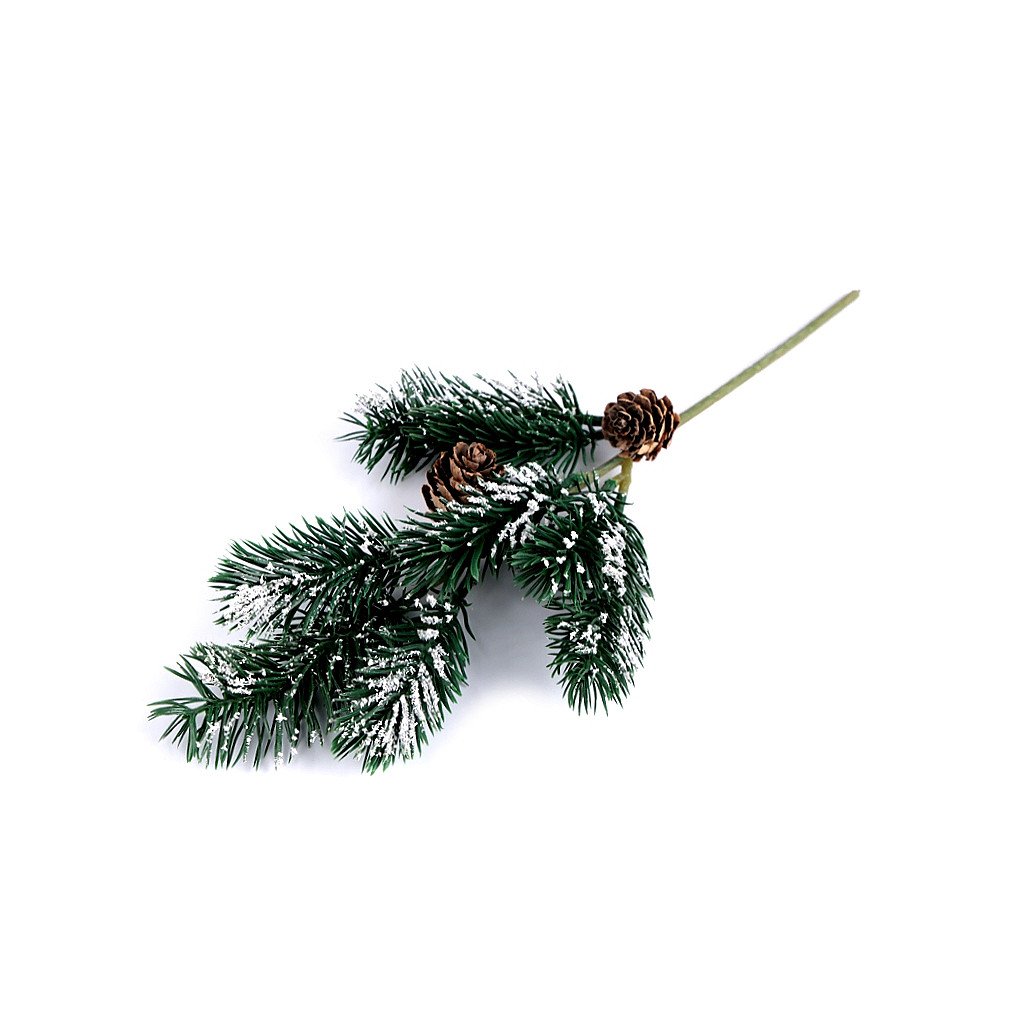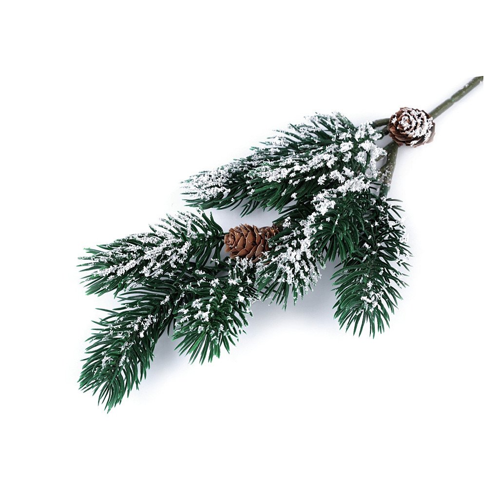 Der dekorative Tannenzweig wird durch natürliche Tannenzapfen ergänzt. Es ist leicht mit Kunstschnee bestreut. Dank des Drahtes können Sie den Zweig formen. Verwendung: Verwenden Sie den Zweig für Weihnachts- und Winterblumenarrangements. Es fällt auf Kränzen, in Truhen, aber auch in Ikebanas und Vasen auf.