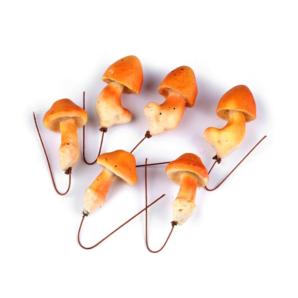 Die Kunstpilze sind an einem gut formbaren Draht befestigt. Sie sehen echt aus , sie sind aus einem stärkeren Material. Sie sind leicht in Polystyrol Halbfabrikaten, Kränze, Blumenarrangements eingebettet, etc. Sie können auch natürliche Moos ordnen, die Teil des Pakets ist.