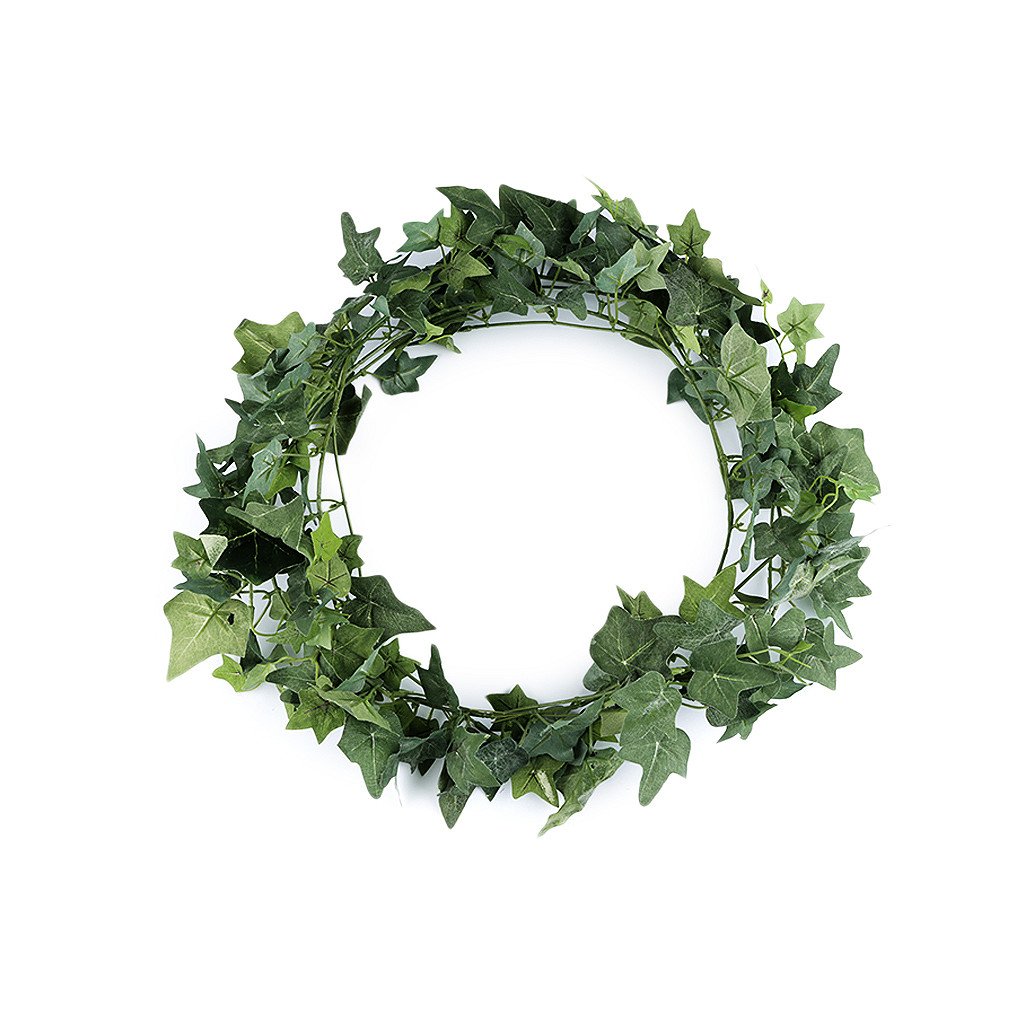 Künstlicher Efeu bildet sich dank des Drahtes gut. Es ist reich mit Blättern bedeckt. Mit Efeu können Kränze, Hochzeitstische, Stühle und Tore bei der Zeremonie dekoriert werden.