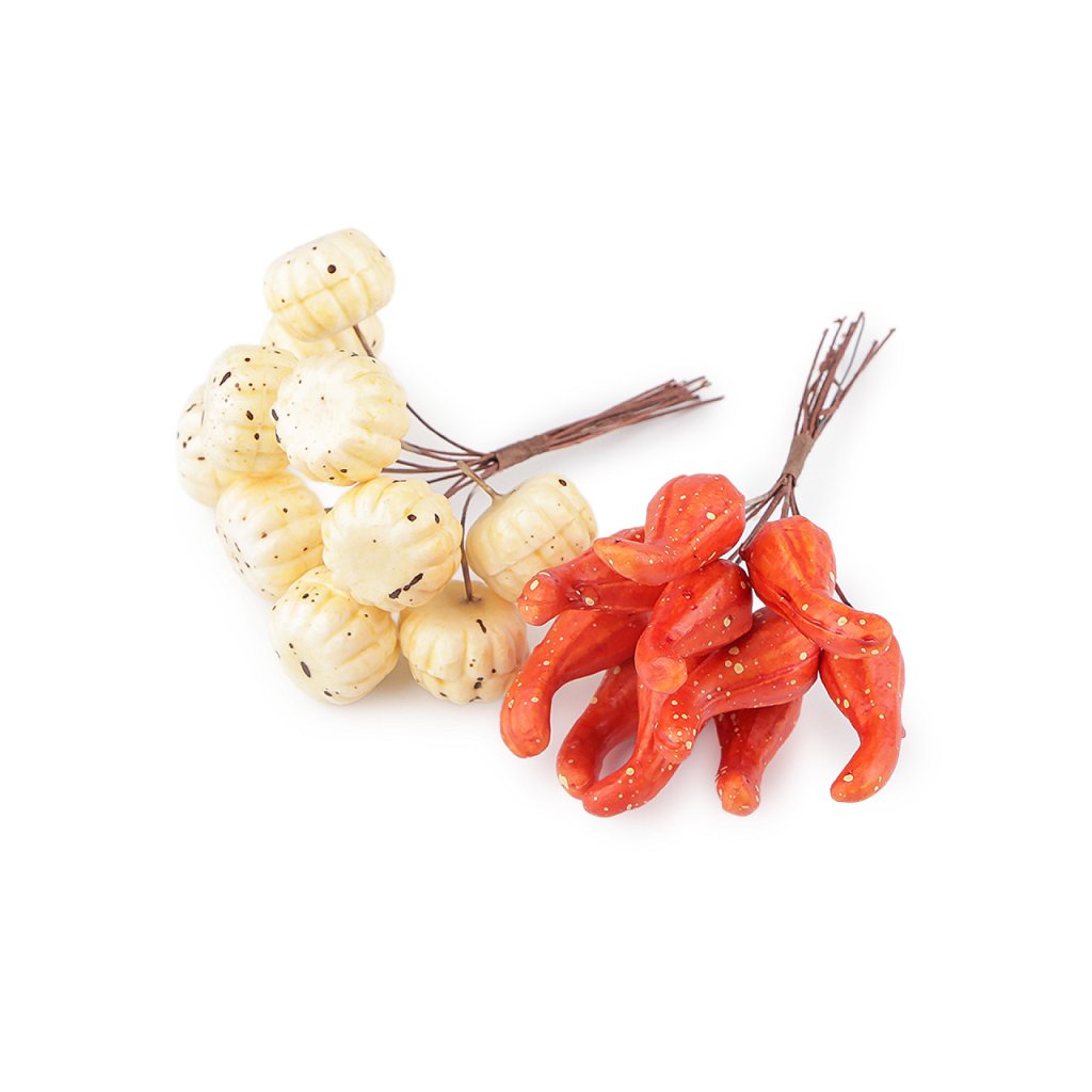Dekorative Mini-Kürbisse sind ein echter Hingucker in Herbst- und Halloween-Arrangements, Kränzen etc. Der Draht, an dem sie befestigt sind, ermöglicht eine einfache Handhabung und Befestigung an verschiedenen Arrangements.