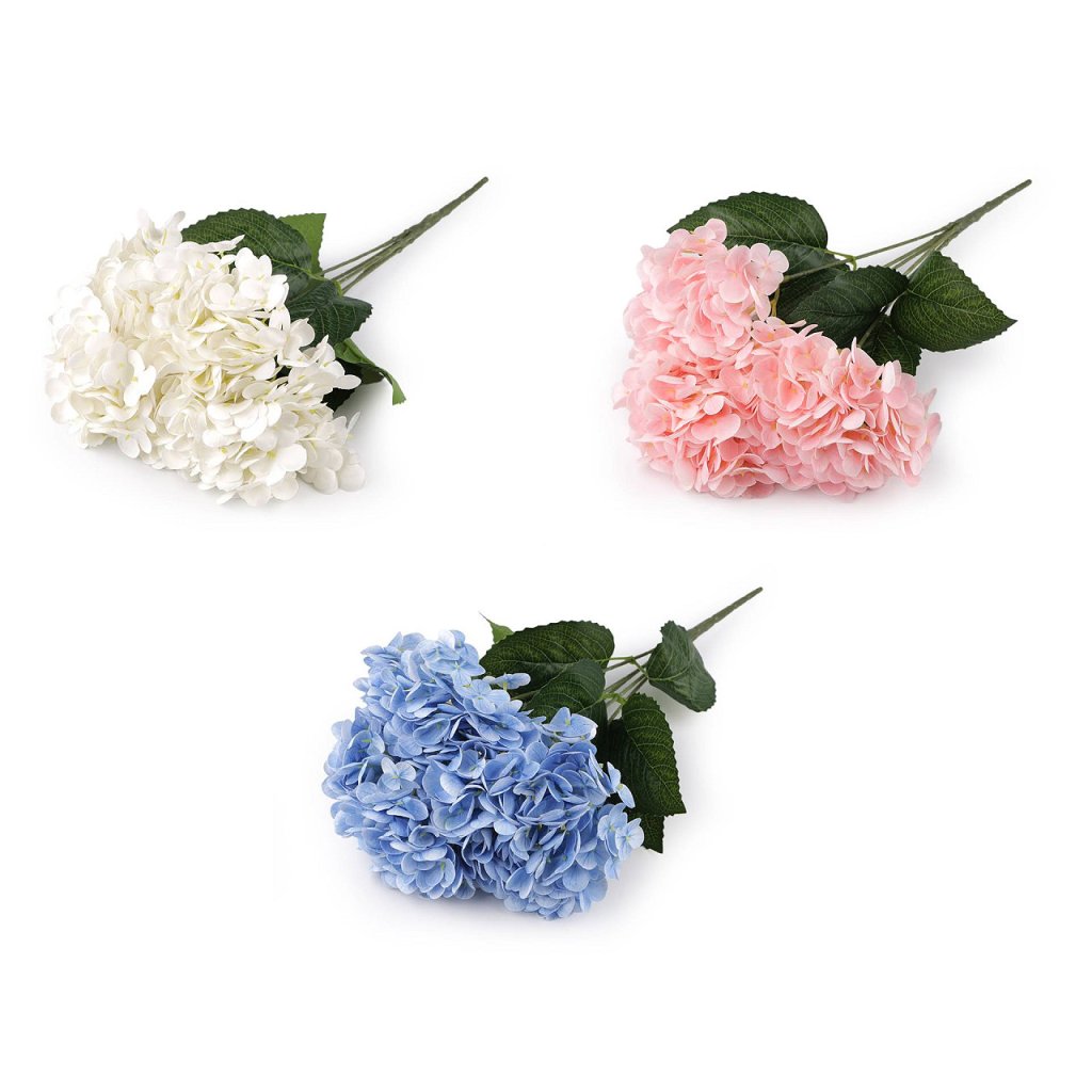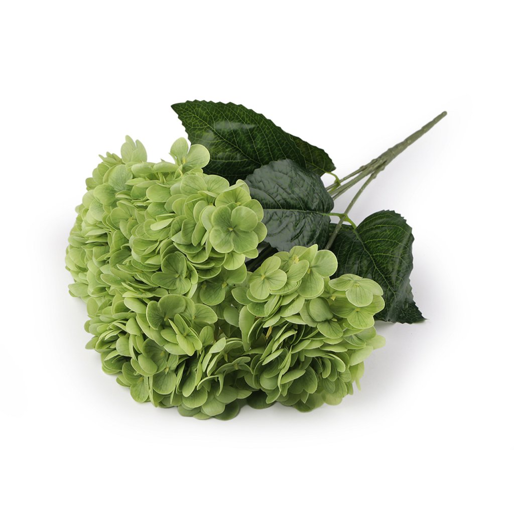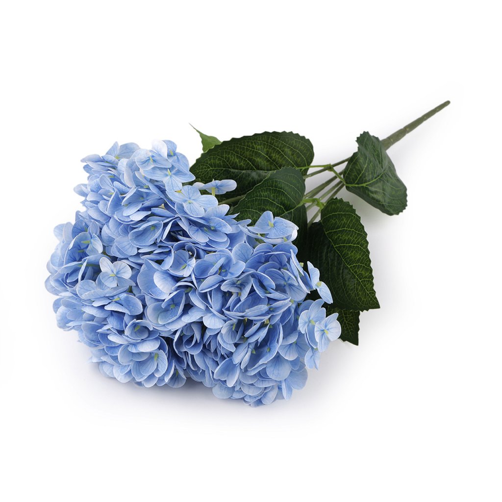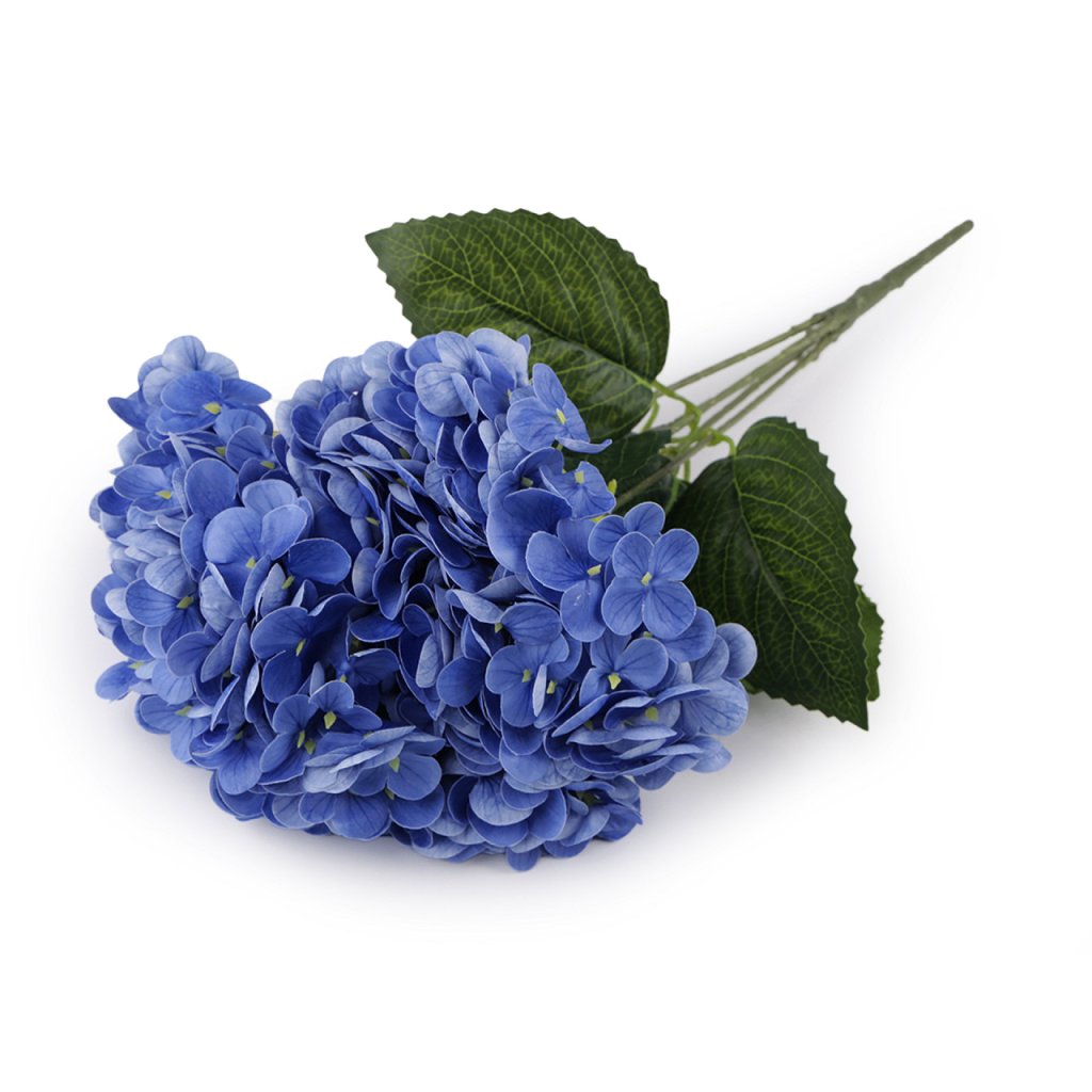 Der künstliche Hortensienstrauß wird durch seine realistische Optik und präzise Verarbeitung überzeugen. Er wird in Vasen oder eingearbeitet in Blumenarrangements und Gestecke gut zur Geltung kommen. Er besteht aus 5 Stielen mit reichen Blütenständen . Im Inneren jedes Stiels befindet sich ein Draht. Einzelne Blüten können als Dekoration für Haarkränze dienen. Der Durchmesser eines Blütenstandes beträgt ca. 12 cm.