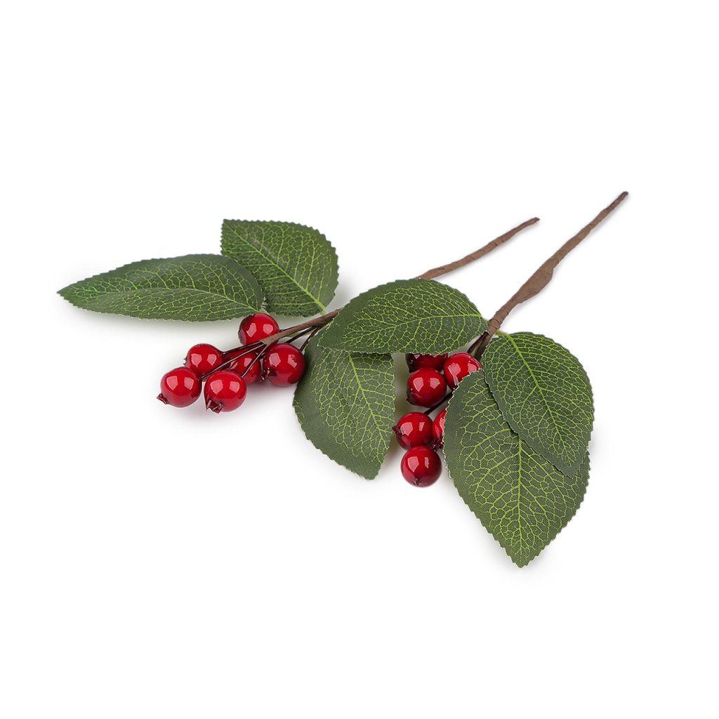 Künstlicher Zweig mit Hagebutten, Stechpalme am Draht