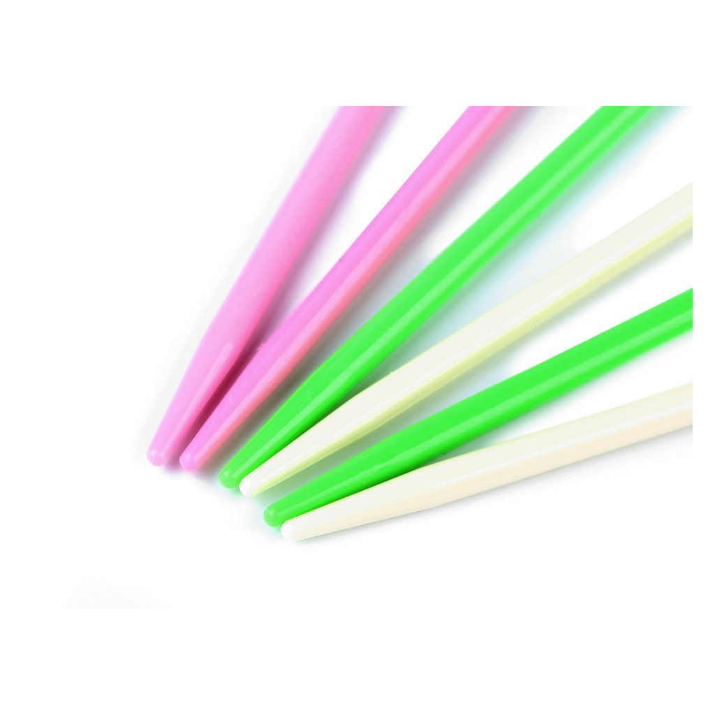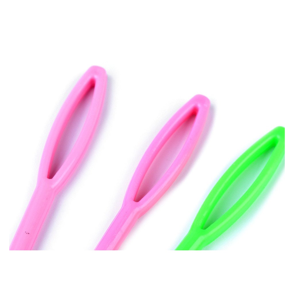 Kunststoff-Sticknadeln sind durch die stumpfe Spitze und die große Öse für Kinderstickereien geeignet . Sie sind flexibel und brechen nicht. Sie können sie auch zum Nähen von Garn beim Stricken oder zum Sticken verwenden. Fädeln Sie einfach ein Band oder Garn ein , mit dem Sie auf Leinwand sticken können. Die Außenmaße der Öse betragen 6,3 x 24 mm. Das Innenmaß der Öse beträgt 3 x 20 mm. Das Paket enthält Nadeln in verschiedenen Farben, das Foto dient nur zur Veranschaulichung.