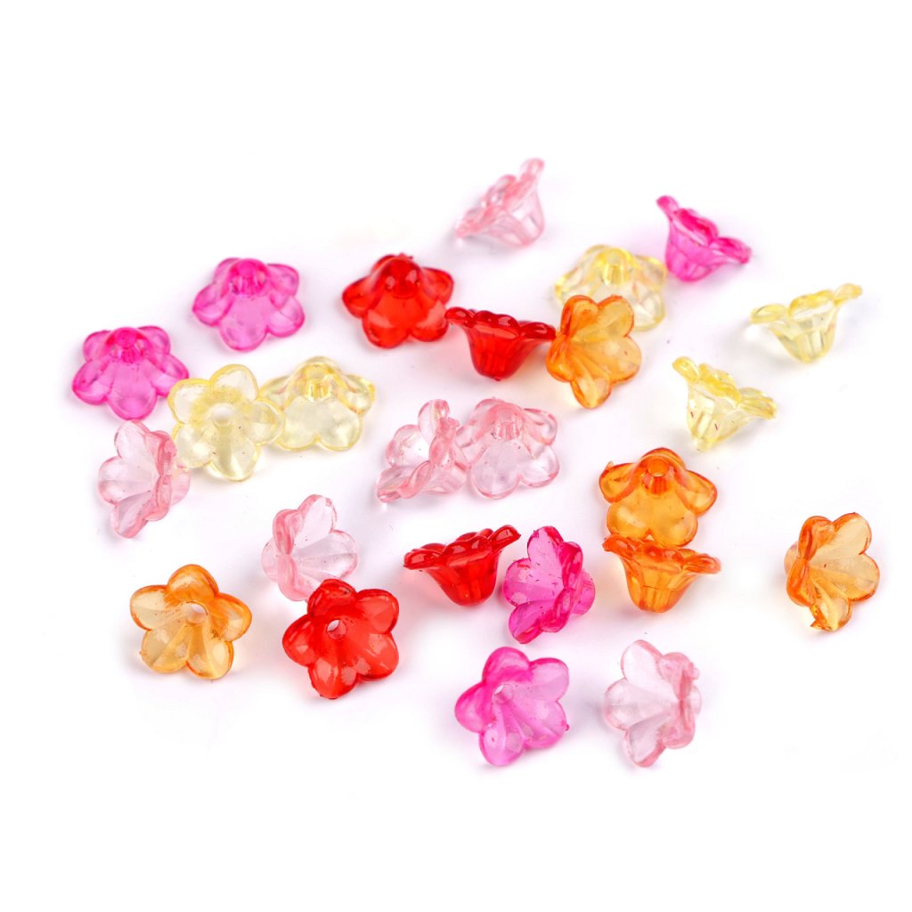 Eine bezaubernde Plastikblume in Form einer Glocke wird besonders Perlenbegeisterte begeistern, die gerne Blumenschmuck oder kleine Engel herstellen. Es ist sehr leicht. Die Blume kann zum Verzieren von Gegenständen verwendet werden, in die eine Nadel gesteckt werden kann. Sehen Sie sich unser Illustrationsfoto an. In einer Packung mit 20 g und ca. 80 Stück Glocken. < Hier können Sie sich ein Video-Tutorial für DIY-Blumenohrringe ansehen.
