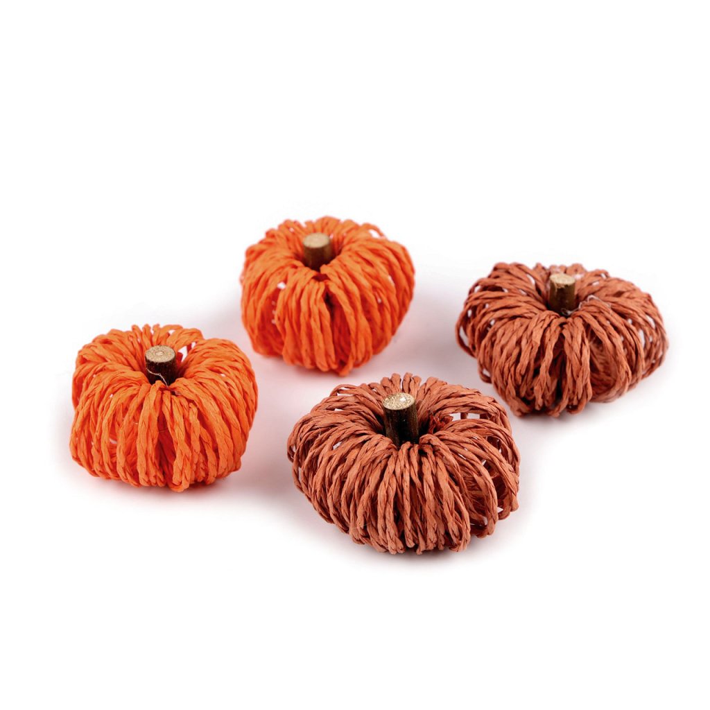 Mini-Kürbisse aus Papierbast sind leicht und gut zum Arrangieren geeignet. Sie kommen besonders gut in herbstlichen Gestecken, Kränzen und Blumentöpfen zur Geltung. Aufgrund des Materials, aus dem sie gefertigt sind, eignen sie sich eher für die Innendekoration.