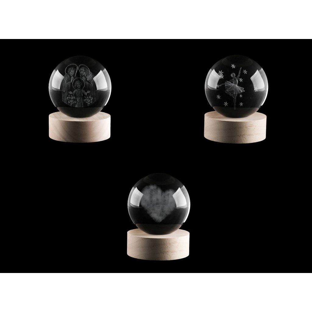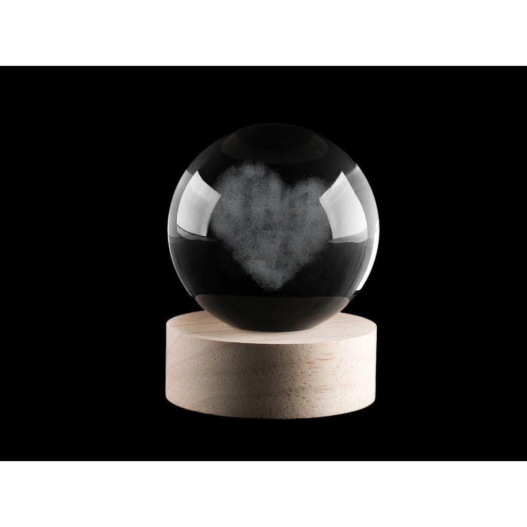 Die beleuchtete LED-Glaskugel verleiht jedem Raum eine ruhige und entspannende Atmosphäre. Das Licht ist warm, angenehm und gedämpft. Im Inneren der Kugel befinden sich verschiedene lasergravierte 3D-Motive , die durch das Licht in ihrer ganzen Schönheit erstrahlen. Der Ball steht auf einem stabilen Holzsockel, ist aber nicht fest damit verbunden. Bei unsachgemäßer Handhabung kann er herunterfallen. Für die Dekoration werden 3 AAA-Batterien benötigt, die nicht im Lieferumfang enthalten sind. Der Durchmesser der Basis beträgt 8 cm, ihre Höhe 2,7 cm.
