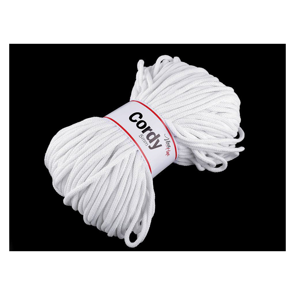 Cordys Fadengarn besteht aus einem Baumwolltunnel, der mit Polyesterfasern gefüllt ist. Es ist robust und langlebig und eignet sich zum Stricken und Häkeln. Sie werden es zur Herstellung von Beuteln, Körben, Teppichen, Taschen usw. verwenden.