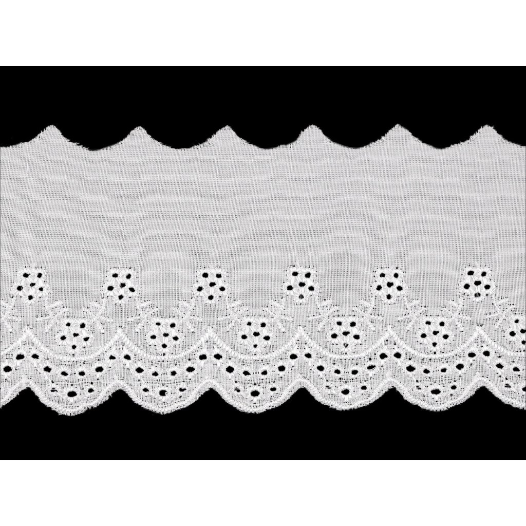 Madeira-Stoff mit Lochstickerei und Blumenmotiven lässt sich auf Kleidungsstücke aufnähen und verleiht ihnen attraktive Details wie Ärmelbündchen, Röcke oder Halsausschnitte. Er eignet sich auch hervorragend zum Verzieren von Tischdecken, Vorhängen, Gardinen, Zierkissen oder Bettwäsche. Die Breite des unvernähten Teils kann geringfügig variieren (±10%).