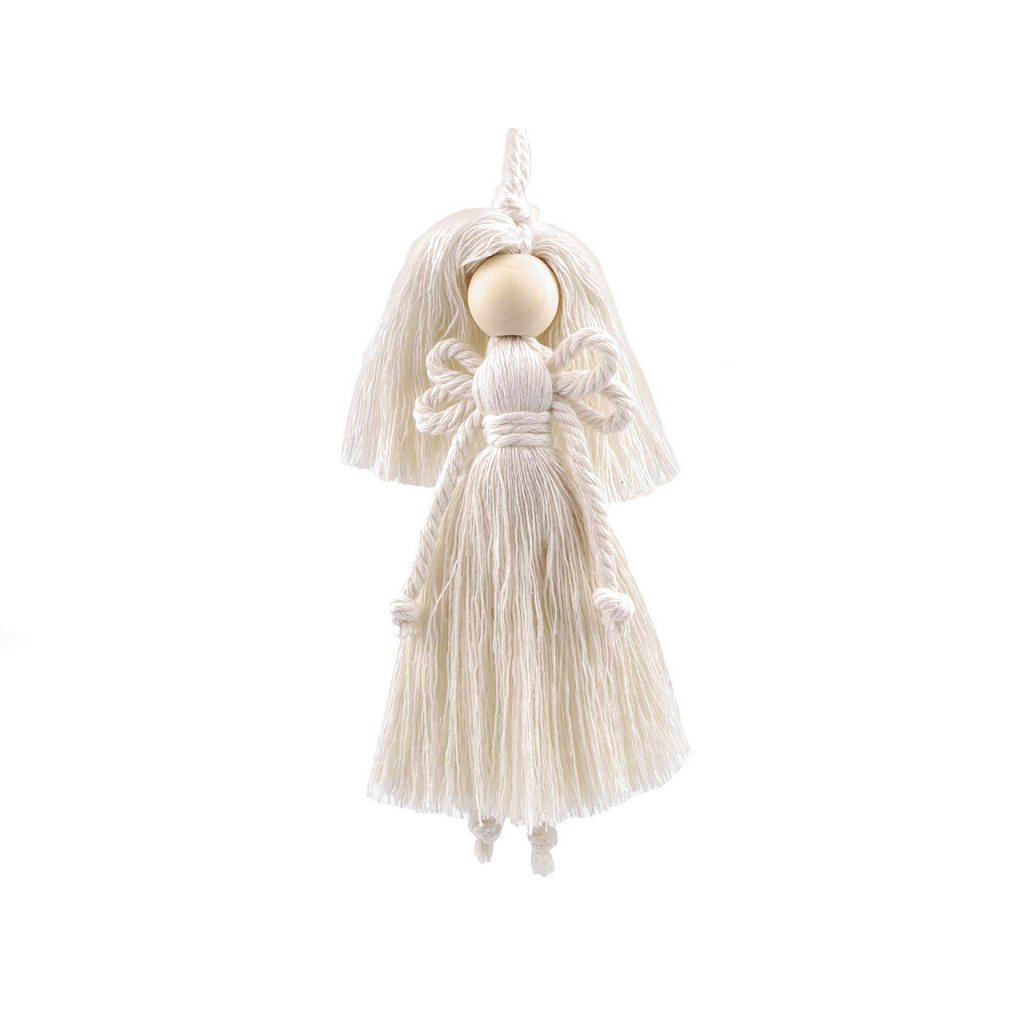 Der Deko-Engel ist in Makramee-Technik gefertigt. Es besticht auch durch die verwendeten natürlichen Materialien . Es hat oben eine Aufhängeöse. Der Engel ist ein schönes Geschenk für verschiedene Anlässe. Mit einem geraden Kamm können Sie die Haare und den Rock sanft kämmen.