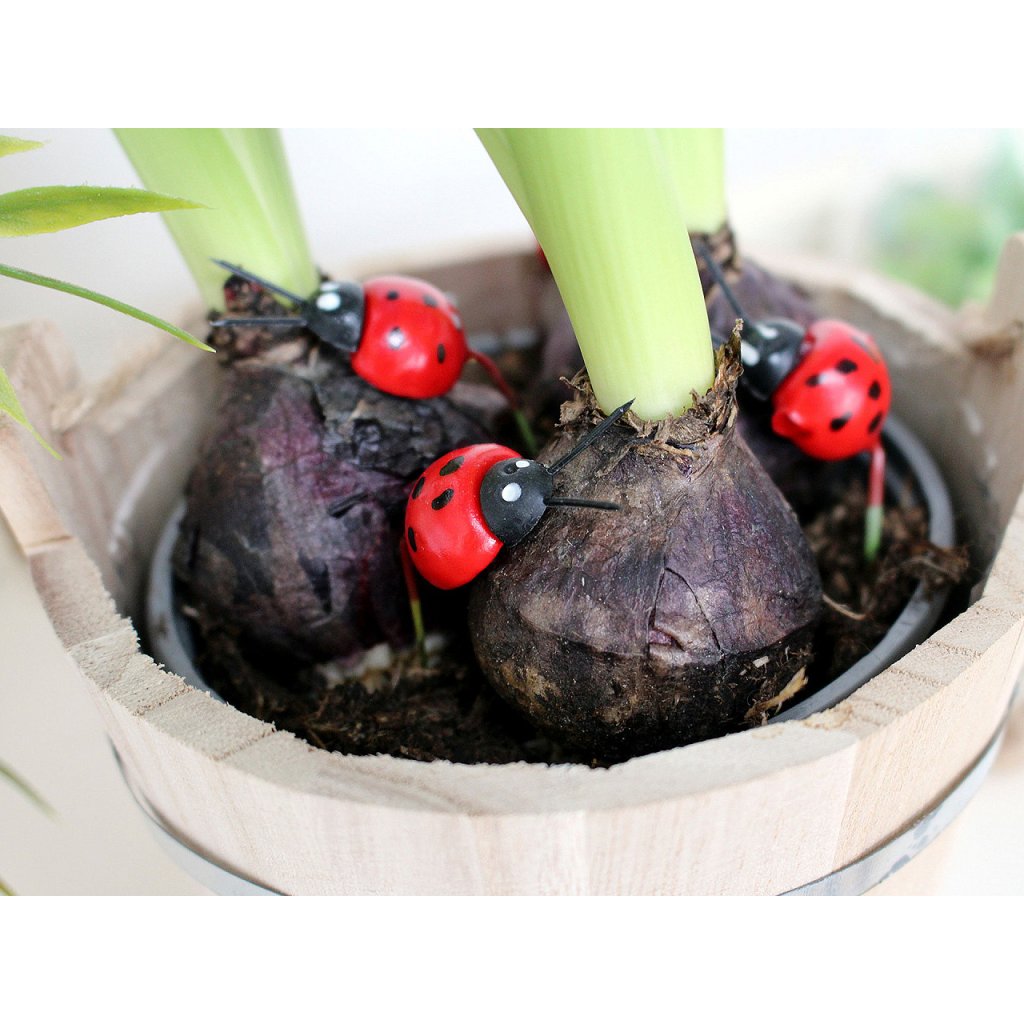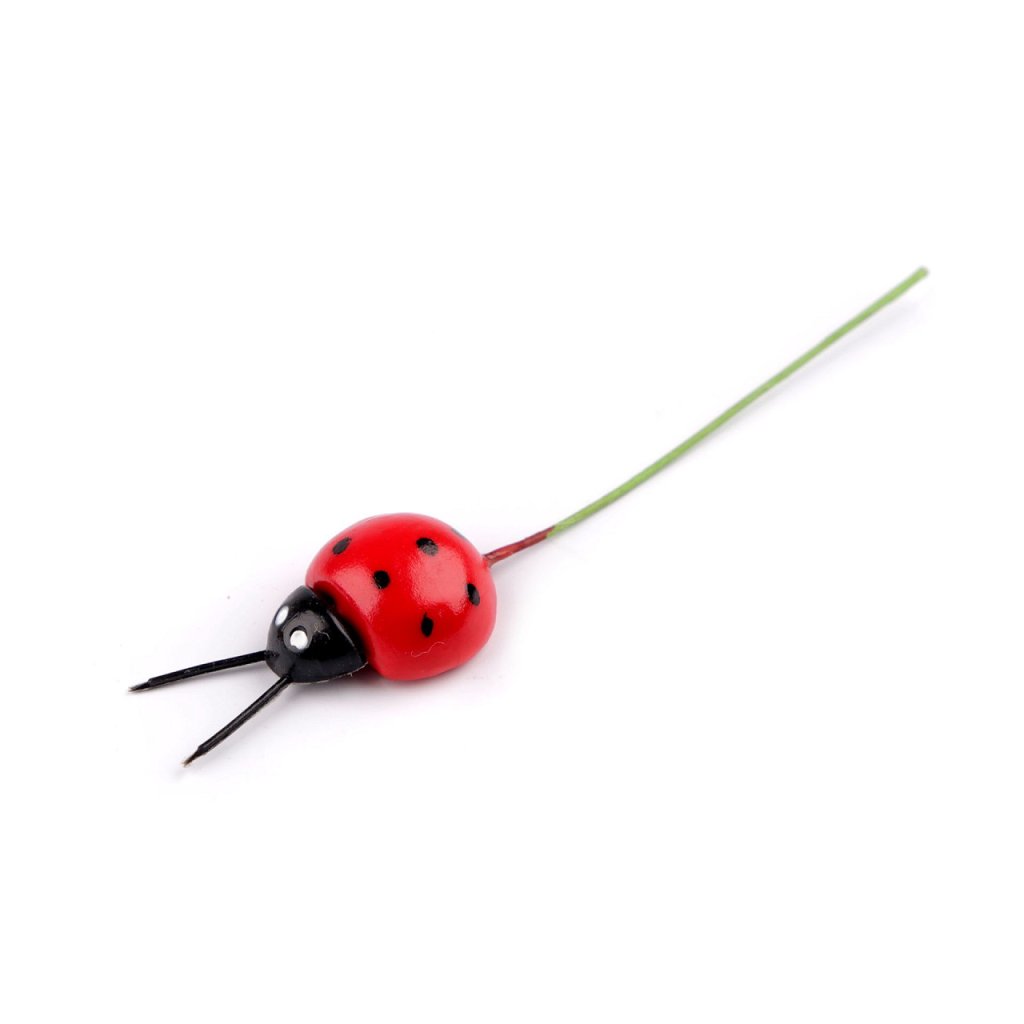 Dekorative Marienkäfer werden auf flexiblem Blumendraht befestigt. Eingearbeitet in Gestecke, Kränze, Blumentöpfe usw. kommen sie besonders gut zur Geltung.