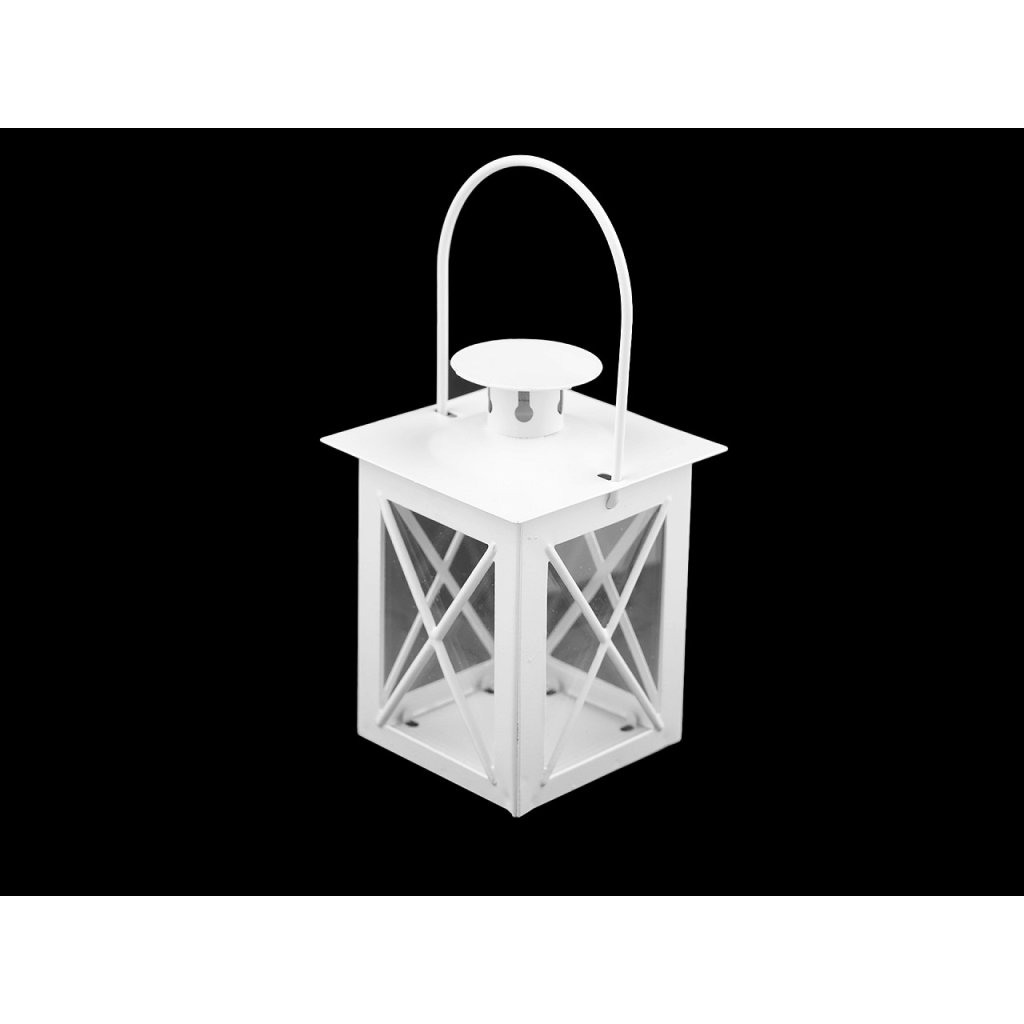 Eine kleine Laterne aus Metall erhellt beispielsweise ein Fensterbrett oder ein Regal. Sie ist auch für die Terrasse geeignet. Das Glas in den Füllungen lässt die Flamme nicht erlöschen. Sie öffnet sich mit dem oberen Klappdeckel, der mit dem Tragegriff verbunden ist. Die Gesamthöhe der Laterne inkl. Henkel beträgt 16cm.